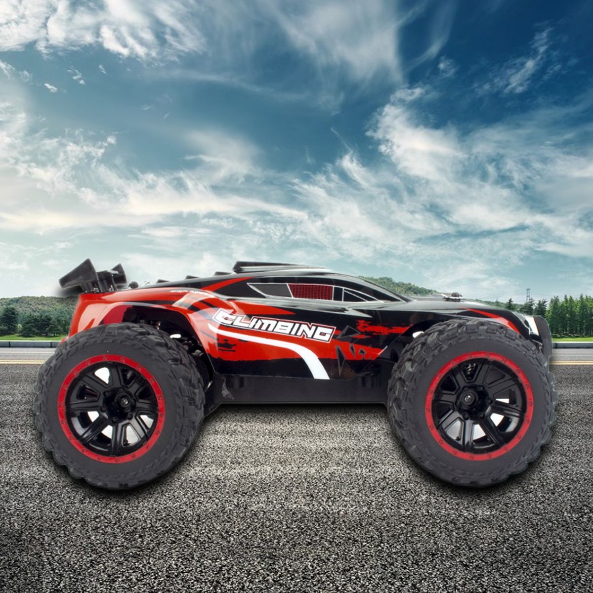 With bump pattern large tires, high chassis, the simulation off-road racing car is anti-skid shock absorption. Remote control operation is more realistic, and Good climbing performance and crash worthiness enable it to climb complex road conditions.