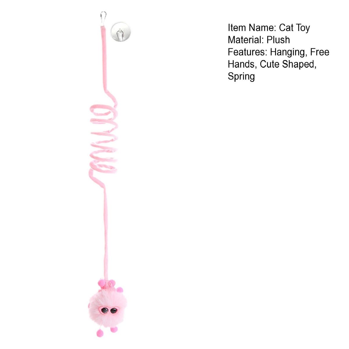 Cat toy is equipped with a sucker, which can be hung on the door or wall and other suitable places for the cat to play by itself. It provides fun for your cat, helps to enhance the physical and mental health of your pet, and frees your hands at the same time.
