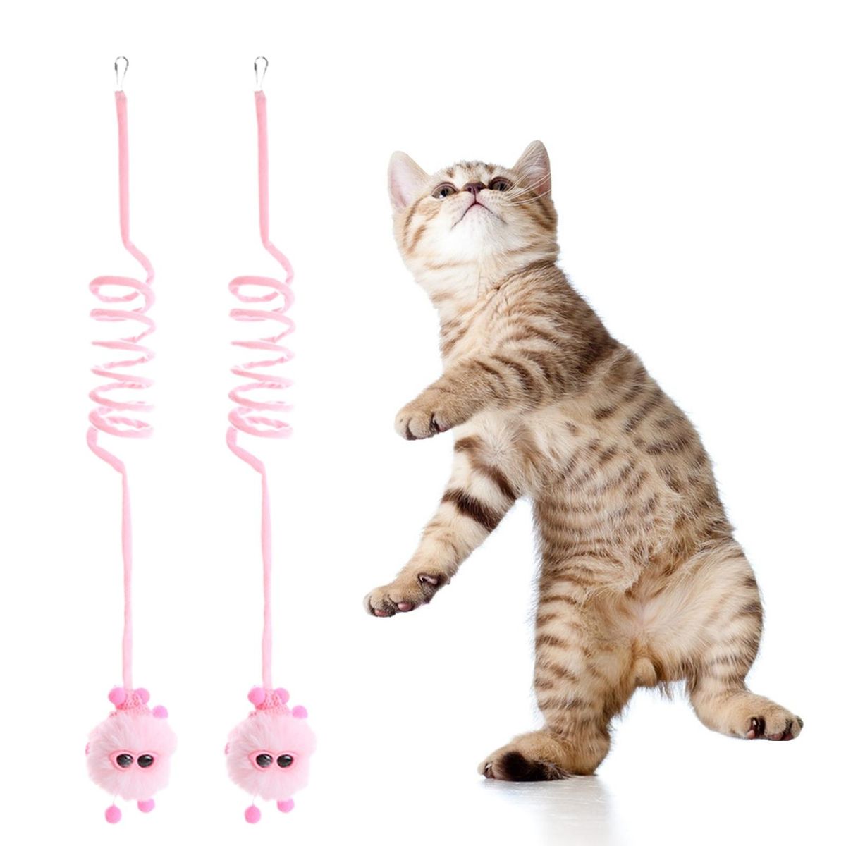 With built-in high-quality spring, this cat toy is flexible and elastic, with strong resilience and is not easy to break. It is equipped with bells and fur balls, which can easily attract the attention of cats and stimulate their hunting instinct.