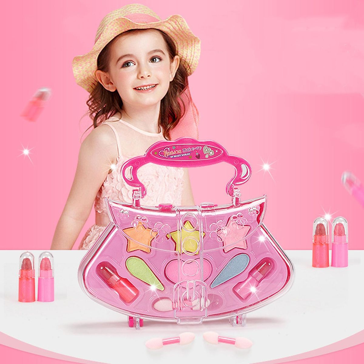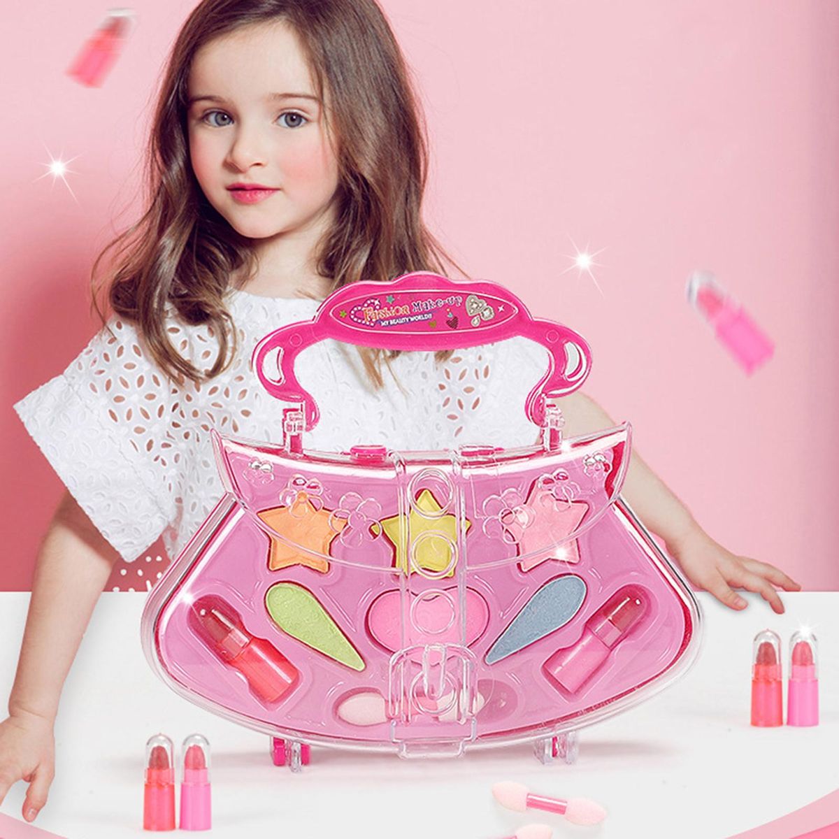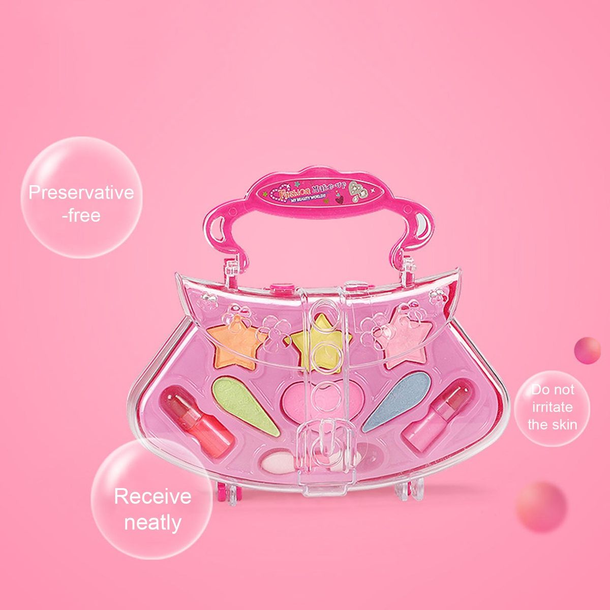 It is constructed of ABS material. Thedesign makeup box toys use water-soluble components to make the box wash off easily.