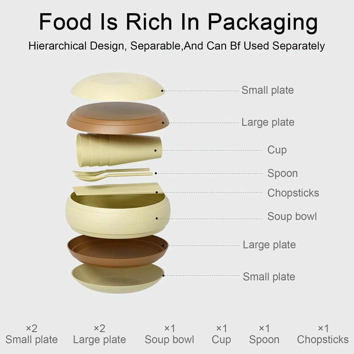 Featuring a dinnerware set that can be stacked for storage, it is very convenient and does not take up much space in your bag, it is lightweight and portable, making it the perfect outdoor camping picnic dinnerware set.