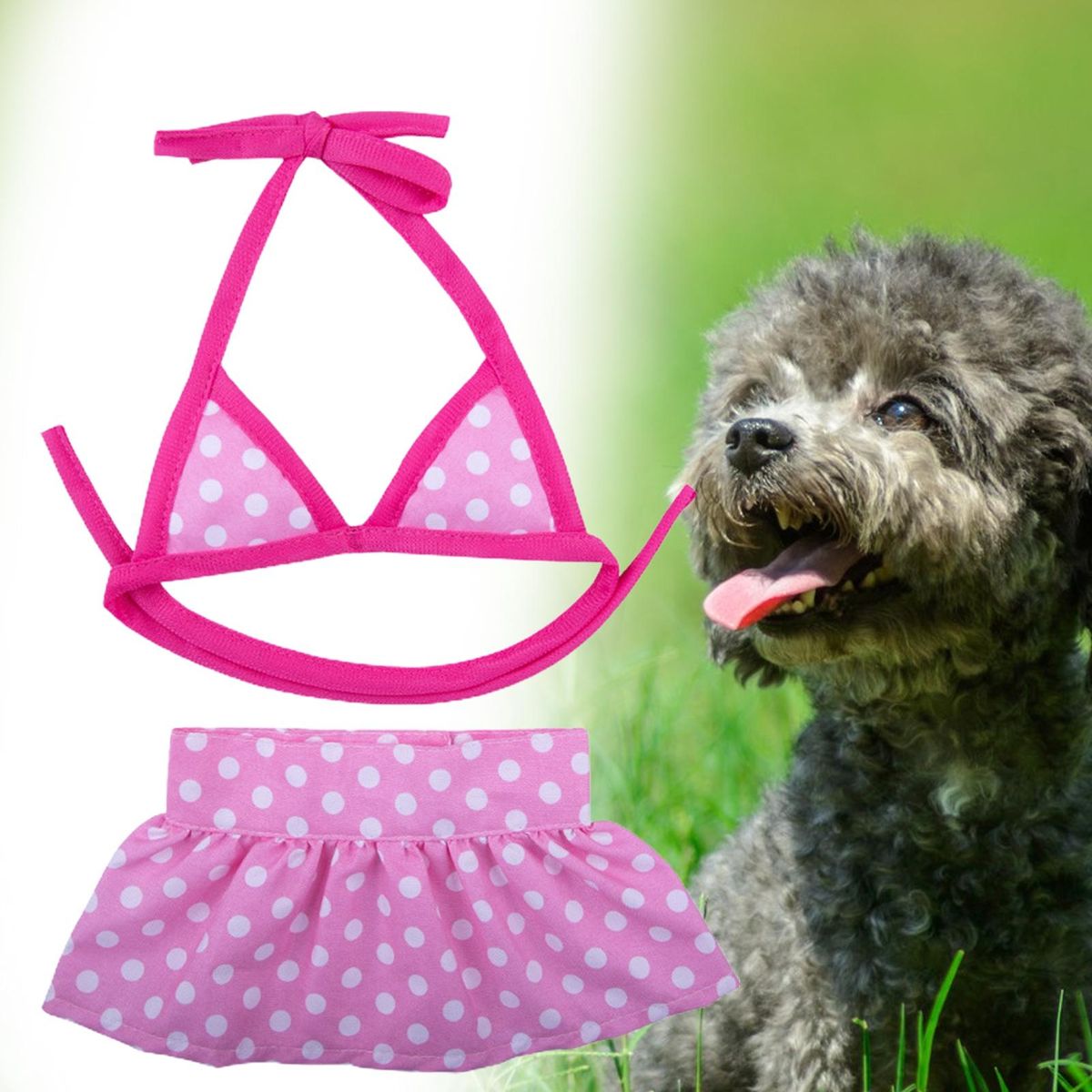 It is the pet bikini swimsuit that is characterized by exquisite pattern and bright color, which enables it to dress-up your lovely pet, making them stand out from the pack when going outdoors. There are many styles to choose from.