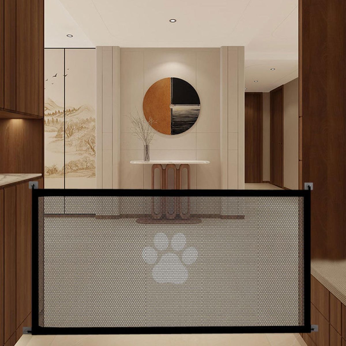 It can be placed at anywhere in house from doorways, between walls, stairs, bedroom, kitchen, dining or even way outside. It is also easy to remove when someone needs to pass.