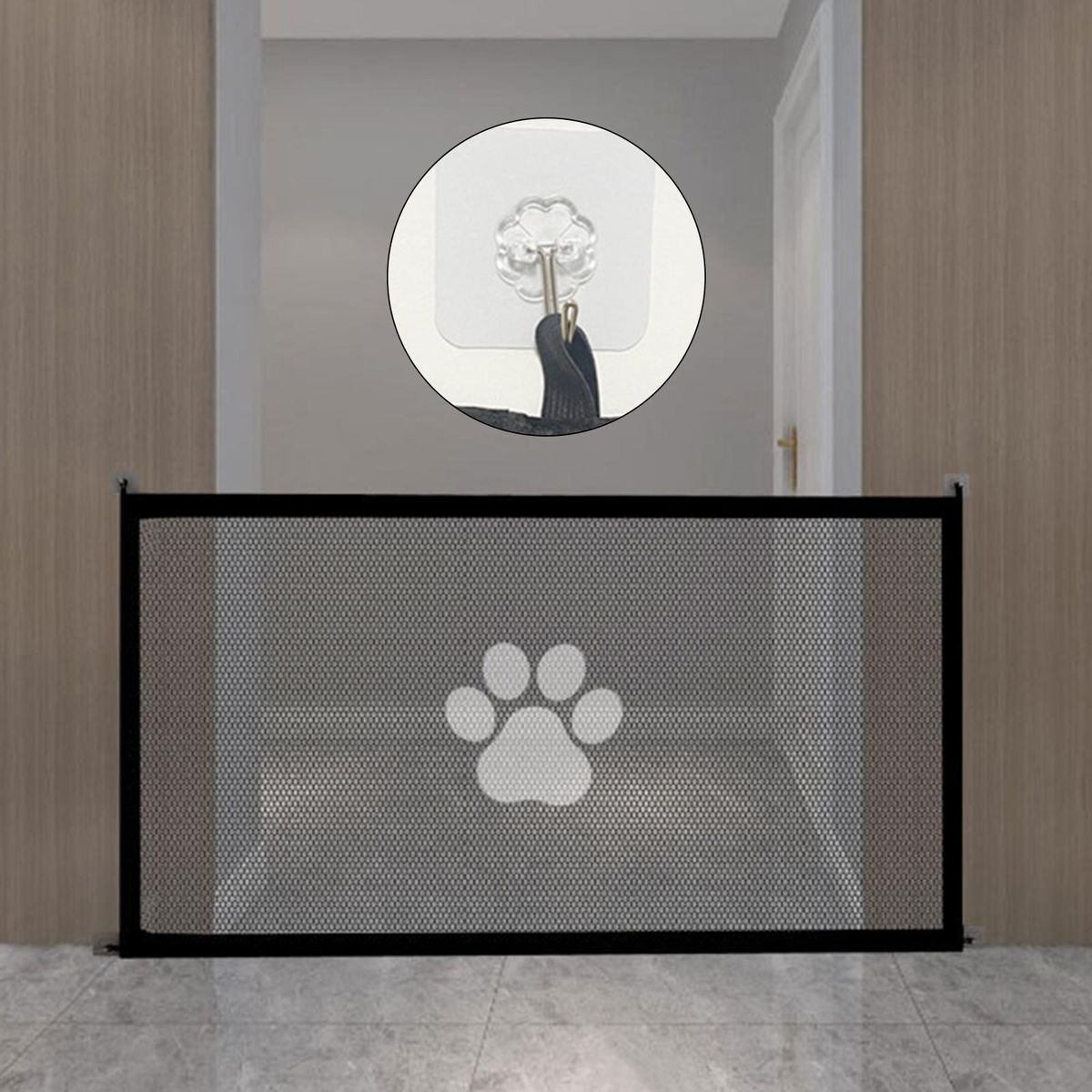 Featuring elastic band at the four corners, this pet fence is easy to install on the wall and remove without damaging the surface of the wall.
