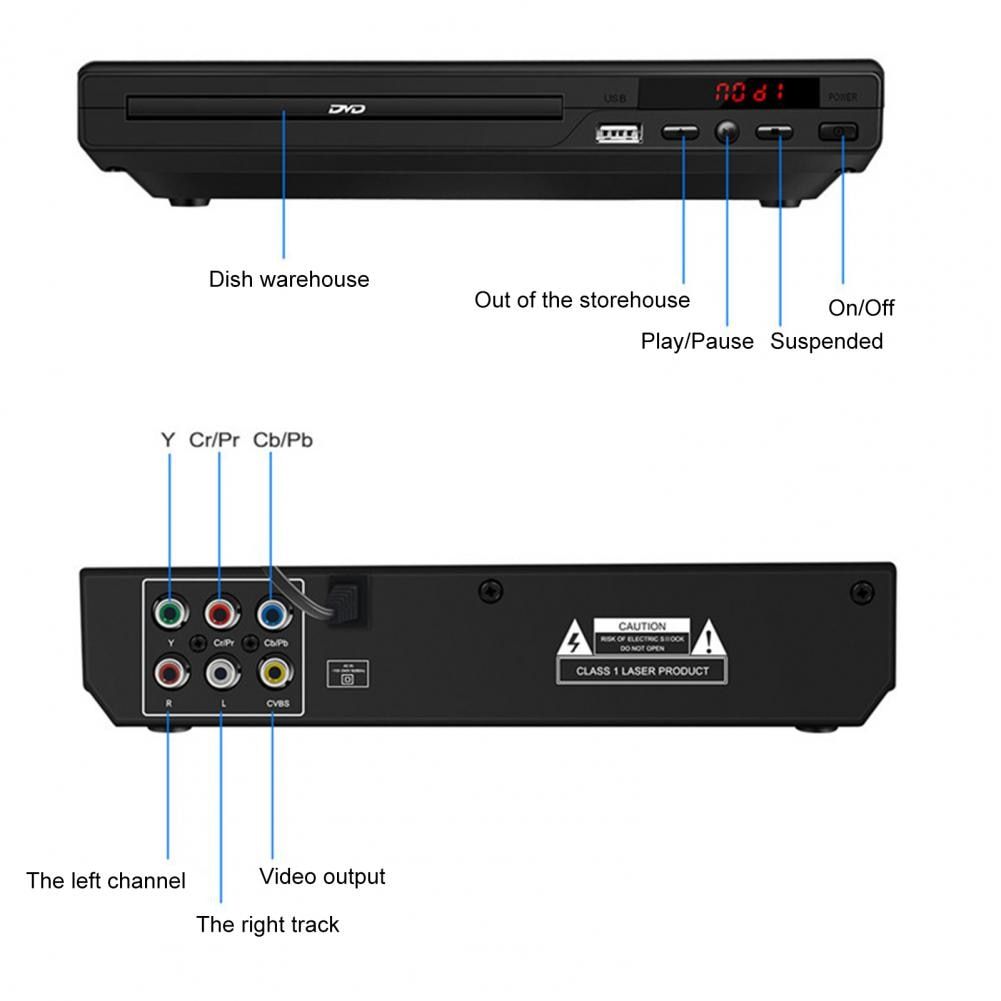 1X 1 Set DVD Player Multiple Interface Energy-saving Plastic Ultra-low Power Consumption DVD VCD Player Set Home Supplies