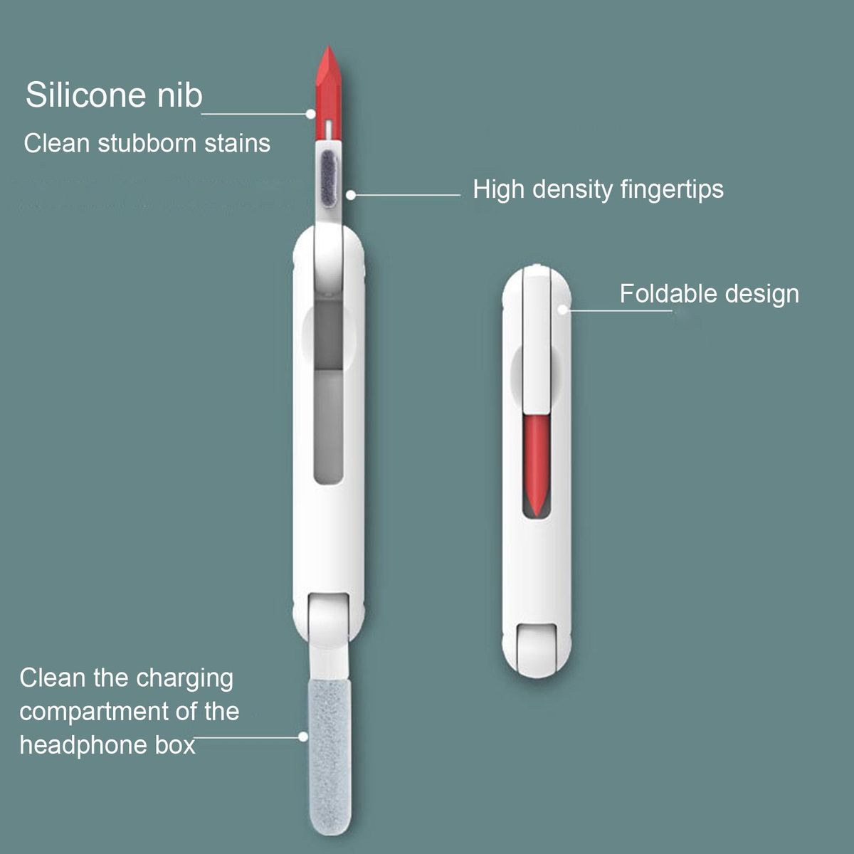 This earphone cleaning pen can meet a variety of cleaning needs and effectively clean your earphone or earphone charging case without dead angle because of its sharp silicone nib, high density brush and flocking sponge design.