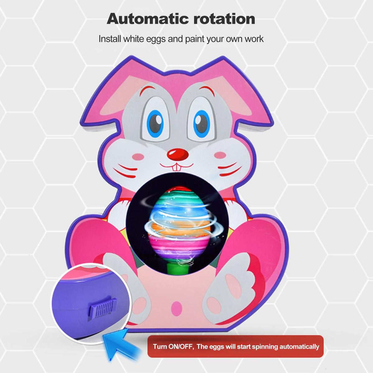 With unique spinning movements and a touch of markers to create endless exciting designs, this painted egg toy is designed in the shape of a rabbit and is very cute to hold a child's attention.