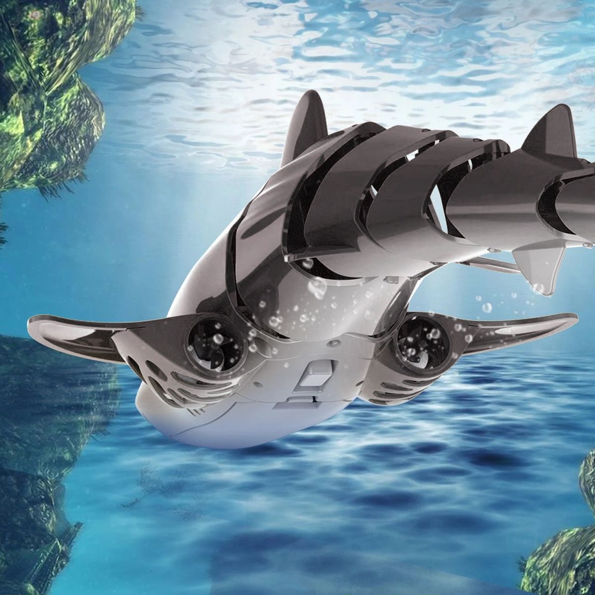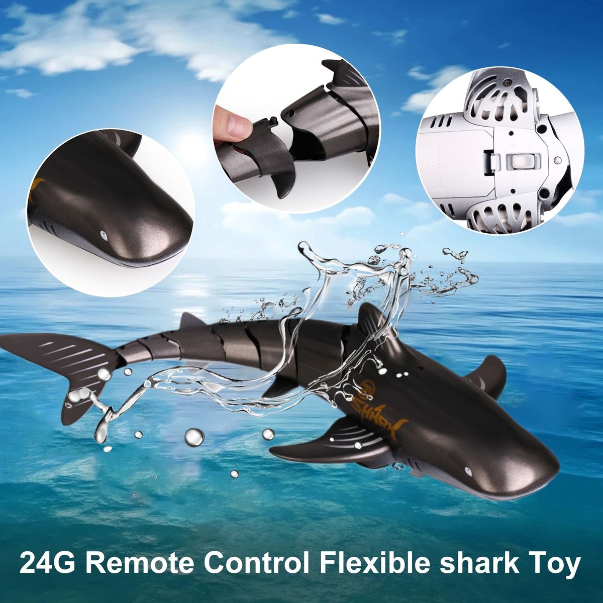 Featuring the power section being waterproof, the waterproof design can be used for a longer period of time. The tail fin of the shark swings violently in the water, and the propeller under the fin provides surging power. With liquid sensing function, if the whale is brought out of the water, the motor will stop working.