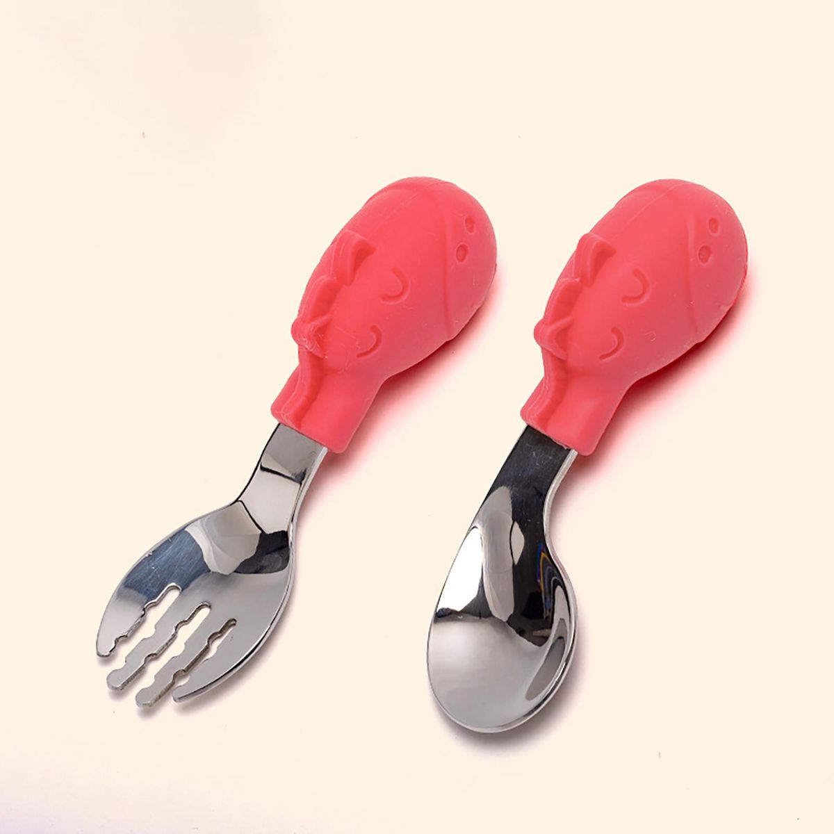 With cartoon animal design, this baby training fork spoon is cute and creative, and more importantly, its ergonomic design allows even babies with weak grip or small hands to hold this feeding spoon effortlessly without dropping it easily.