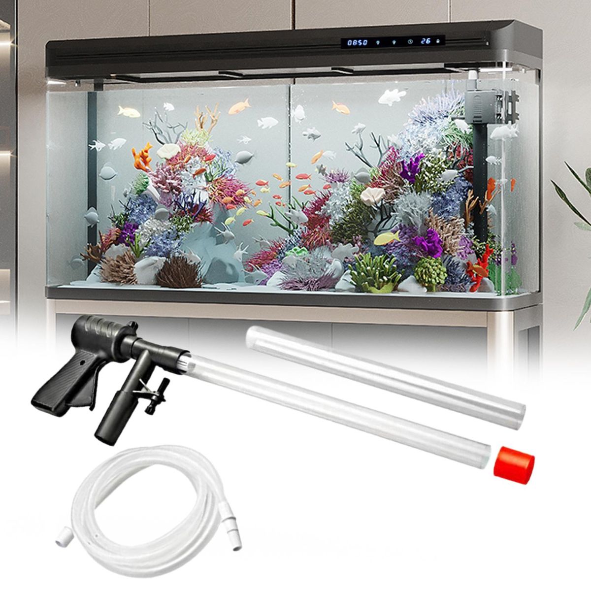 Undoubted that its compact size and lightweight body ensure the product features with portable. Fish tank water changer is durable and quick to discharge water.