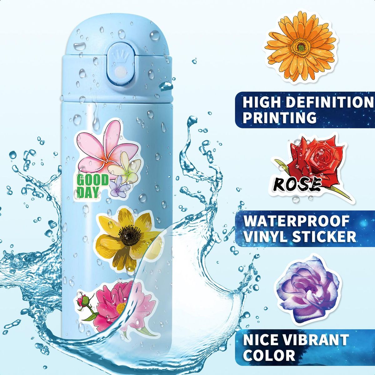 What it can offer you is an effective waterproof, sunscreen flower stickers due to its exquisite workmanship; and it can be reused and can be removed without leaving traces.