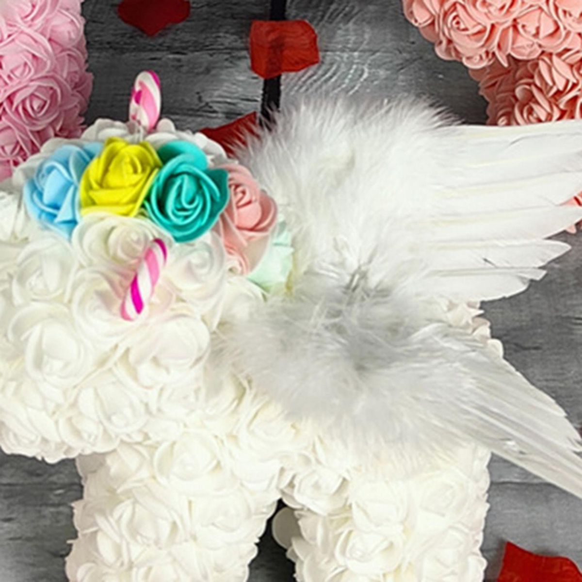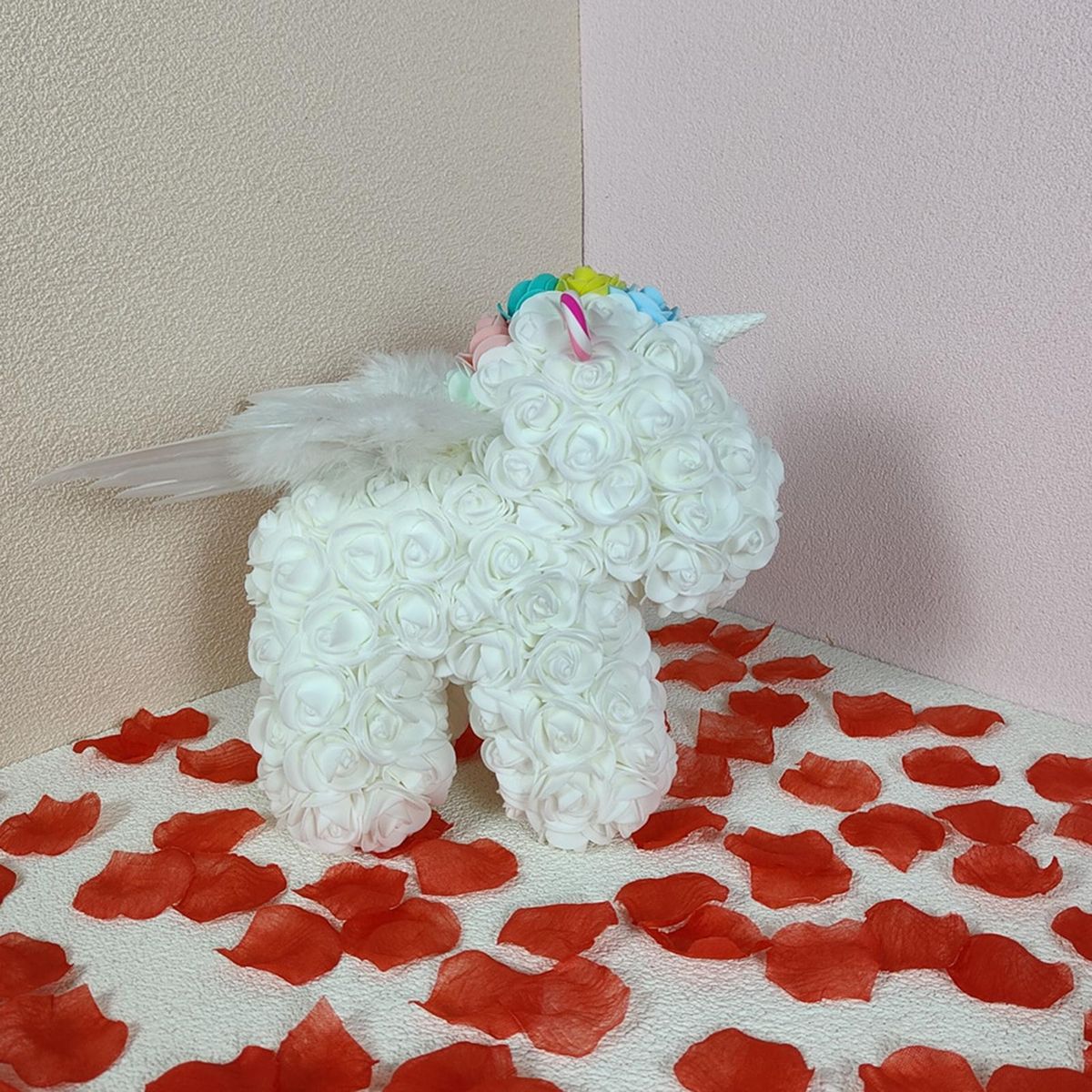 What thisfoam flower bear can bring you is that it combines a cute licorne shape with beautiful roses to give a romantic atmosphere, perfect as a Valentine's Day gift for your loved one.
