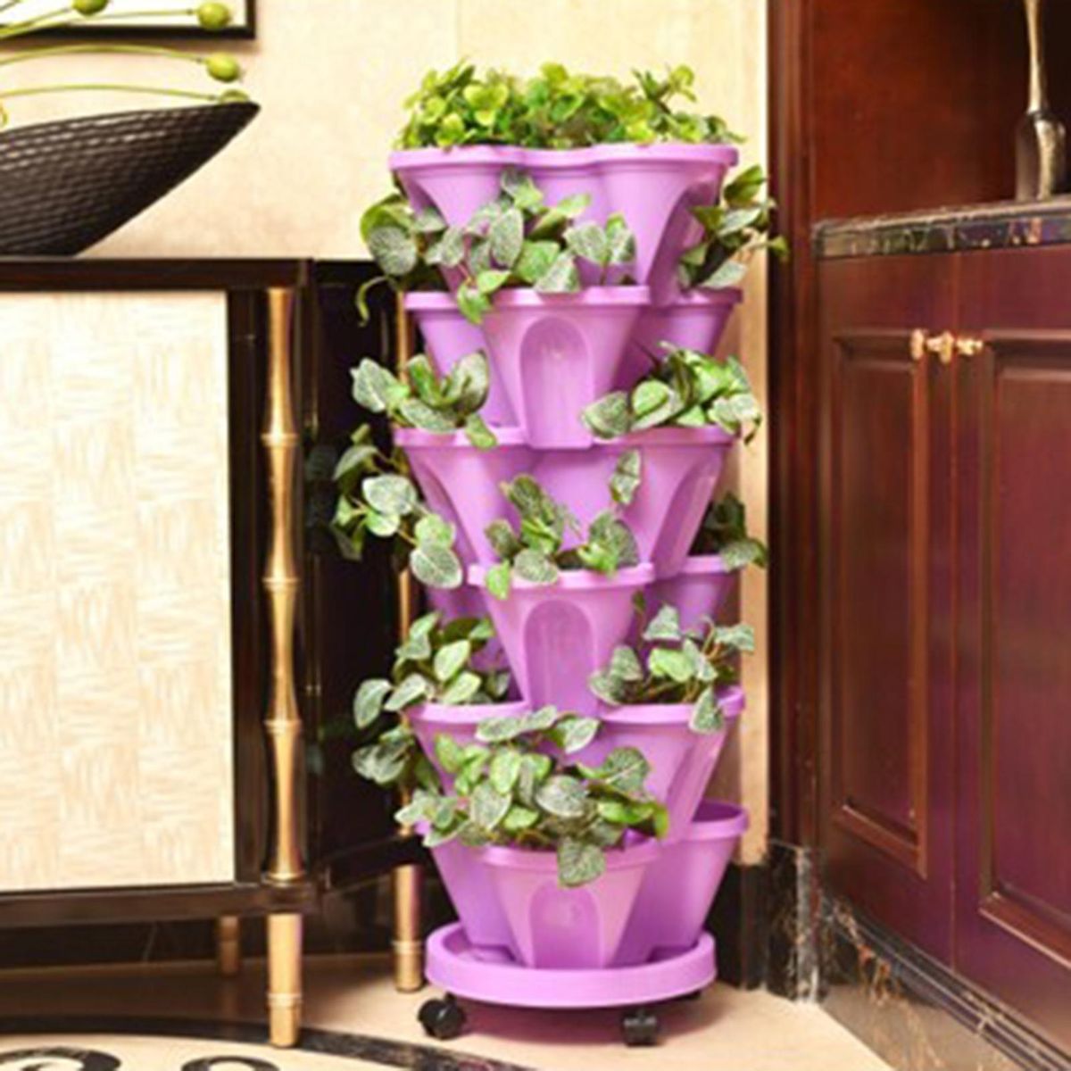 With its stackable design, this planter is able to save space. Besides, it has a multi-layer design, which makes it very convenient to cultivate a variety of vegetables and strawberries at the same time.