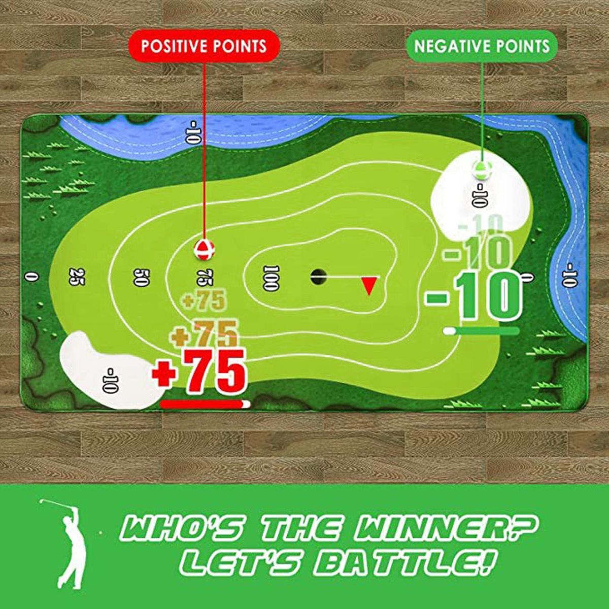 A fun interactive family and party game, this golf game set allows each player to take turns chipping their ball onto the mat, trying to hit the marked scoring area to score the most points.