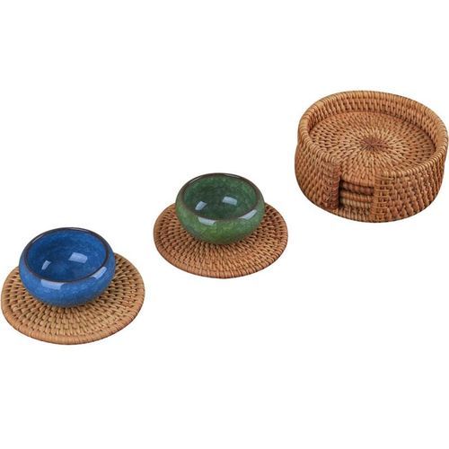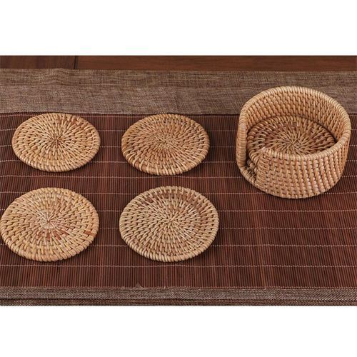 1 Set Hand-Woven Drink Coasters with Holder Rattan Coaster (