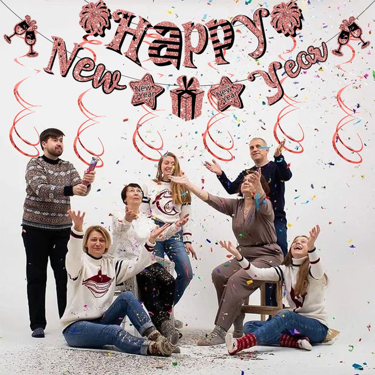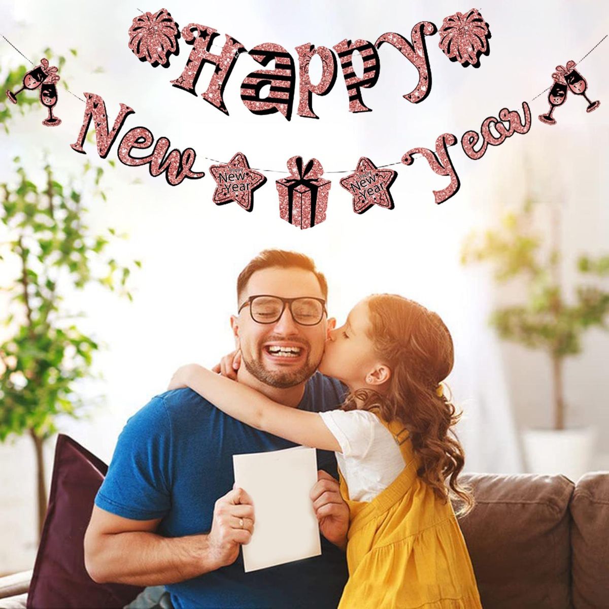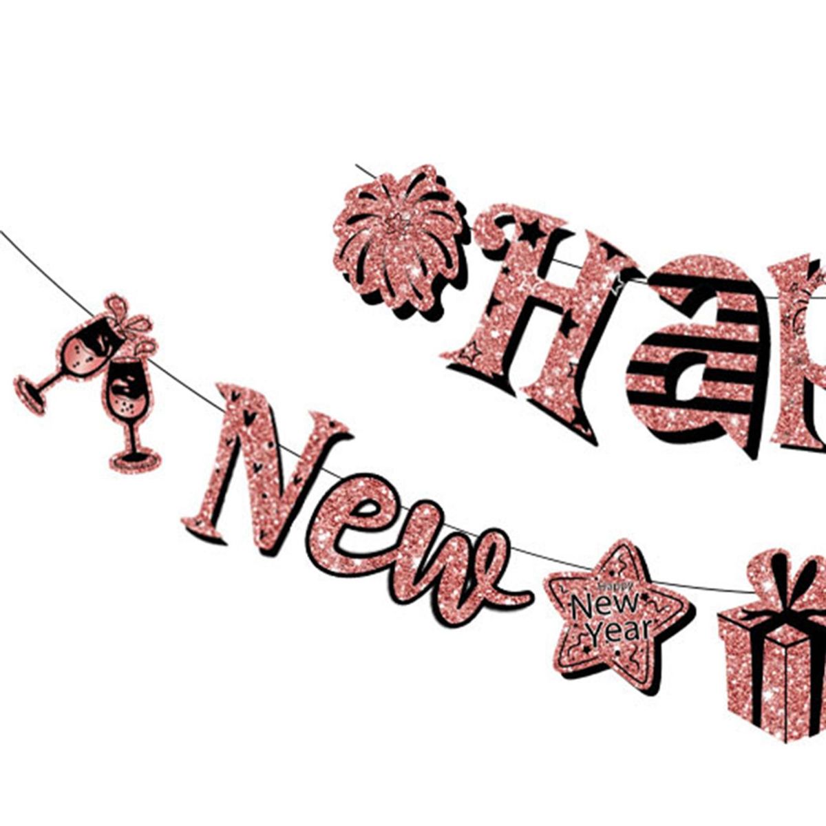 Featuring black gold color Happy New Year letter design, this banner is very creative and has the meaning of celebration, and it is very suitable for celebrating New Year.