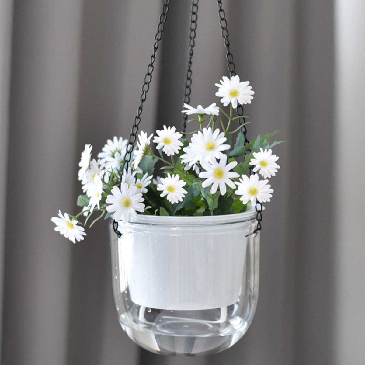 Designed with self-absorbing, this planter can be watered automatically, effectively saving time and making it easy to take care of plants; with a hanging chain, you can hang it from the ceiling or place it on the table.