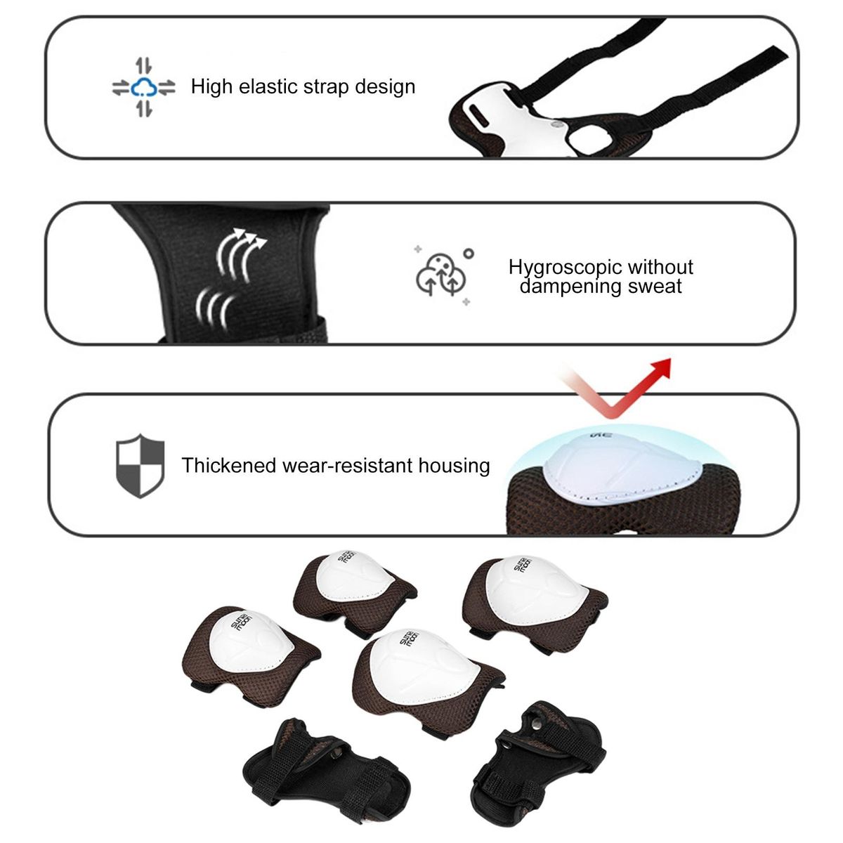 Breathable soft inside and shockproof buffer cushion, the protective gear six-piece set are comfortable to wear, you can wear them for a long time without stuffy. They protect your elbow joint, wrist and knee while exercising, reducing the chance of skin chafing and joint sprains.