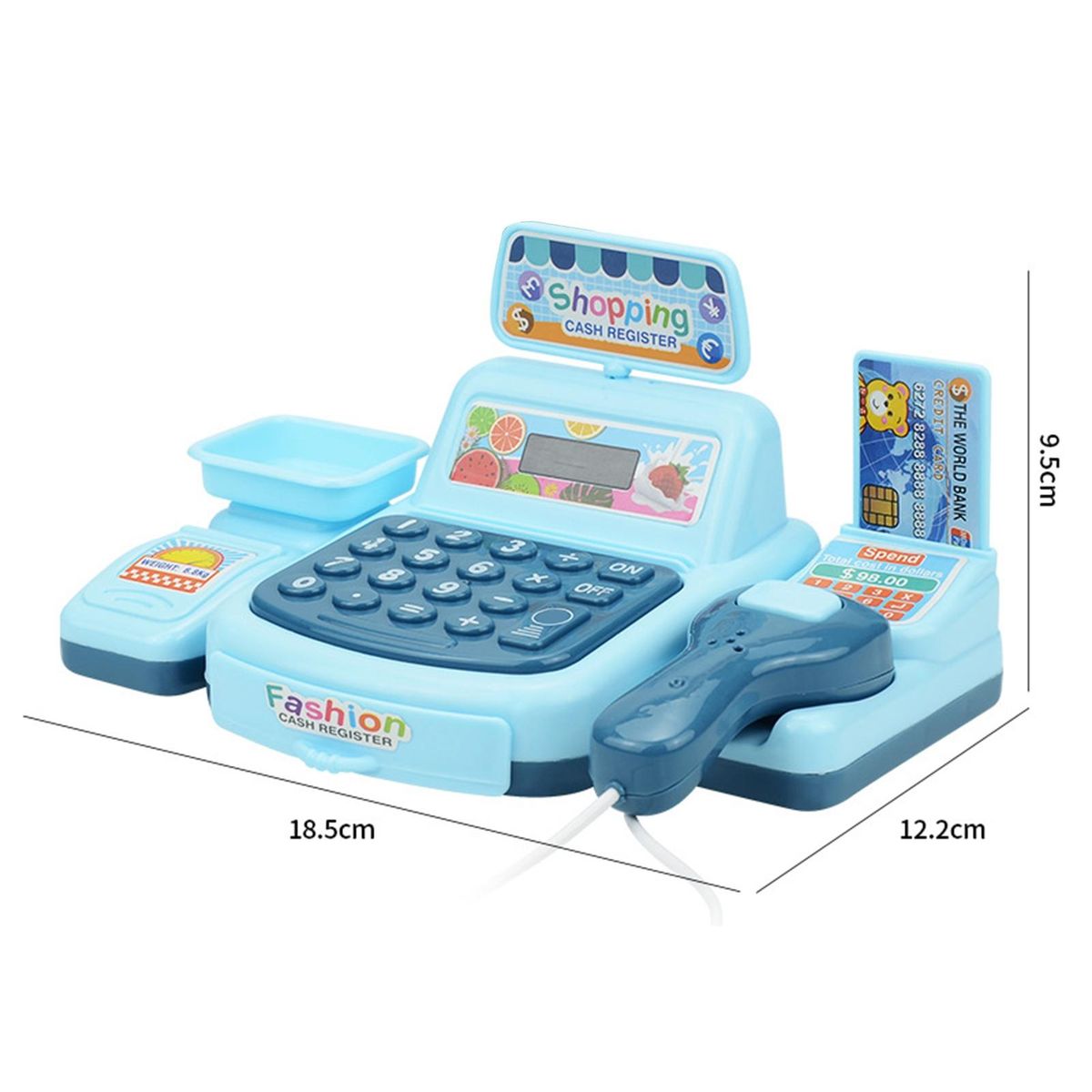 The length of this cashier toy is 18.5cm, the width is 12.2cm and the height is 9.5cm.