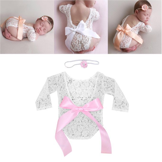 Newborn Lace Romper;newborn baby girl clothes photography props lace;romper big bow photo clothing prop hair band;flower headband outfits photoshoot picture outfit;girls infant headbands wraps princess costume;bodysuit jumpsuit stretch floral backless shoot