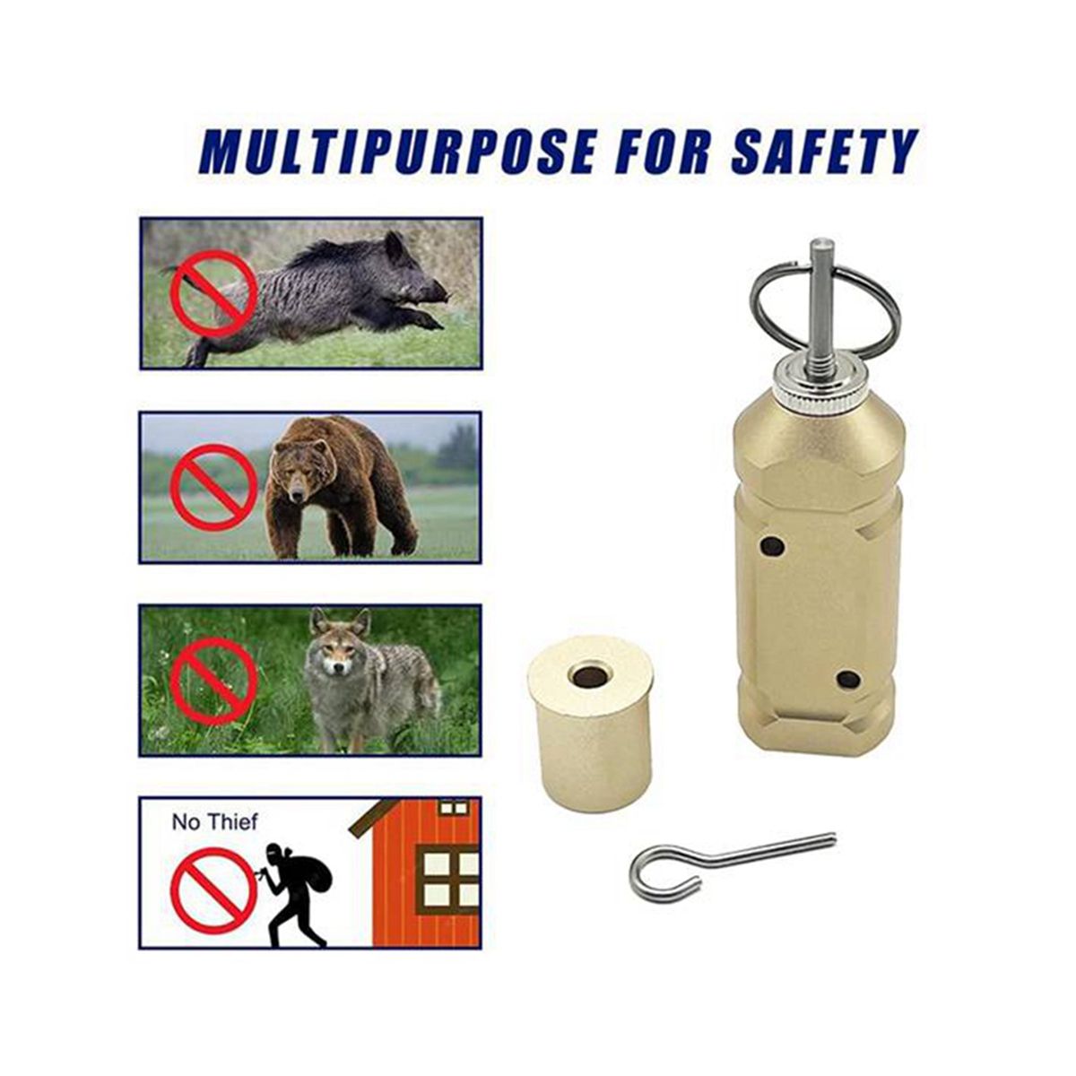 5. Simple Connection: The alarm device can be easily attached to a tree, post or frame through screw holes or zipper cutouts.