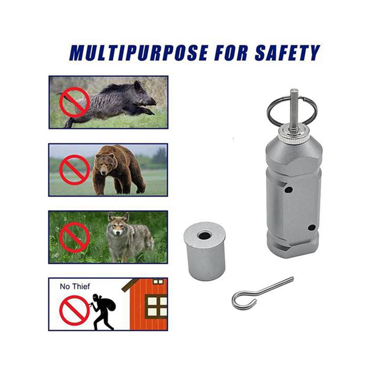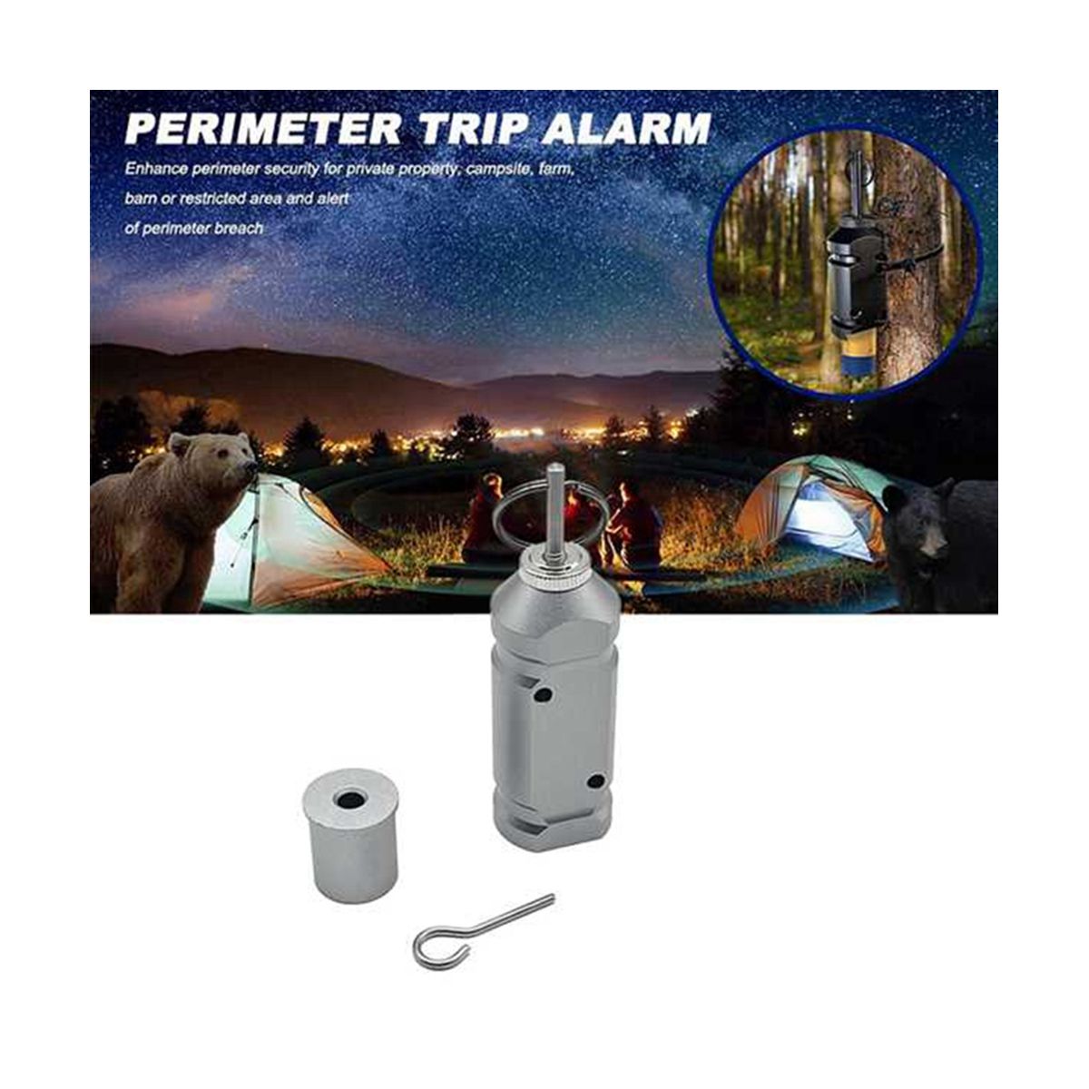 5. Simple Connection: The alarm device can be easily attached to a tree, post or frame through screw holes or zipper cutouts.