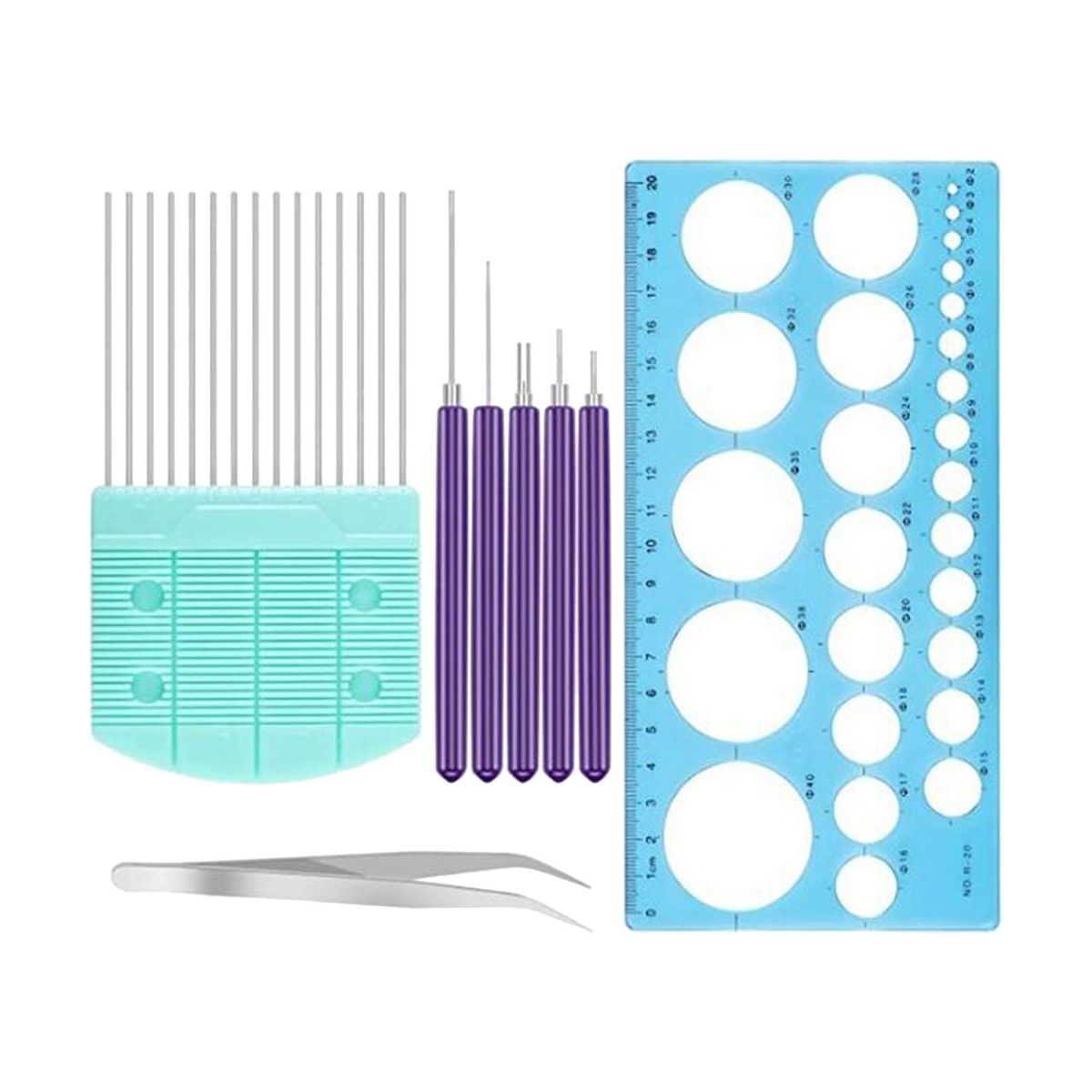 8Pieces Paper Quilling Tools Slotted ( 5 Pcs assorted sizes slotted pens, 1 piece tweezer,1 Piece Comb, 1 Piece Ruler) ()