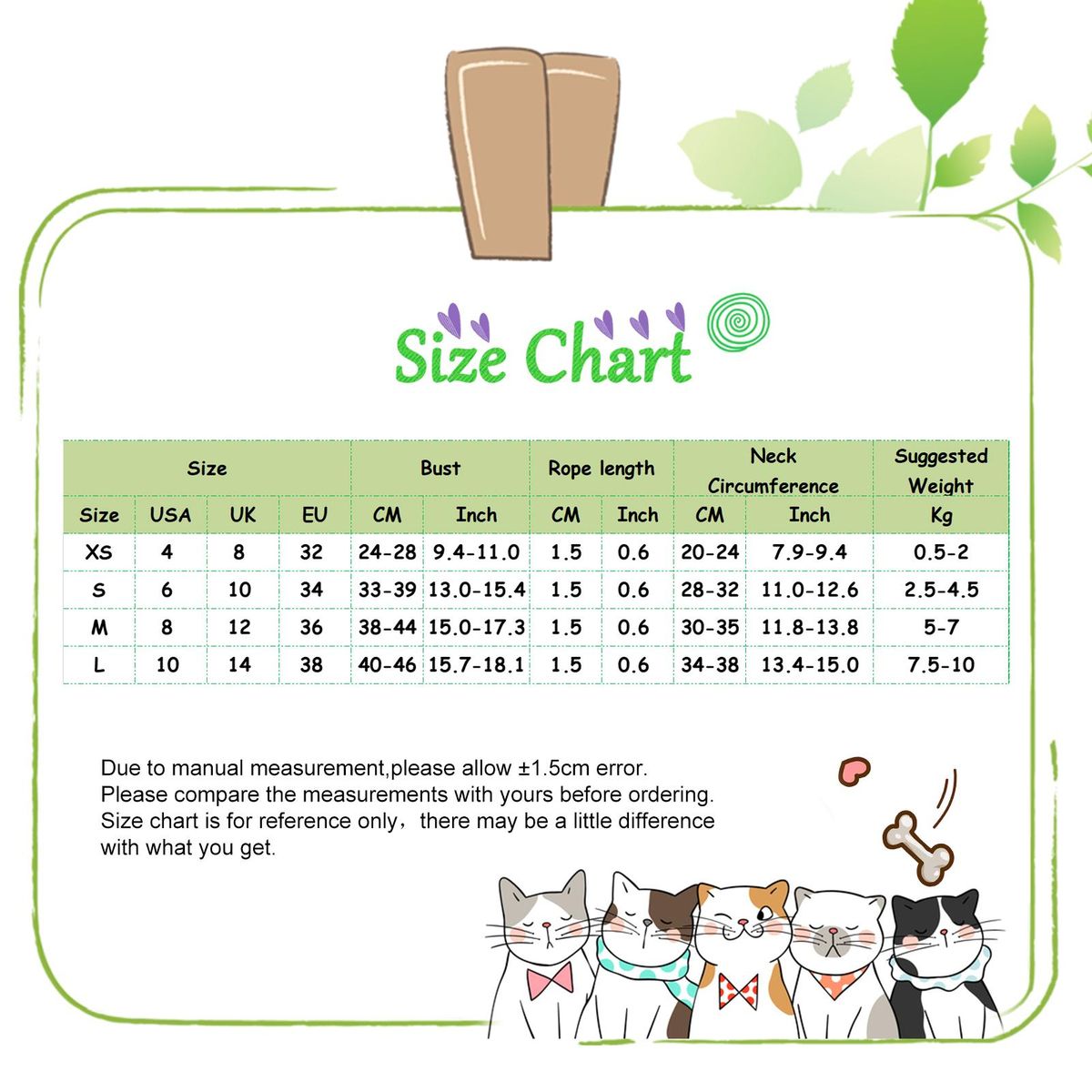 [Our Size XS] Bust: 24cm-28cm/9.4"-11", Neck Circumference: 20cm-24cm/7.9"-9.4", Traction Rope Length: 150cm/59.1", Suggested Weight: 0.5kg-2kg (Approx.)