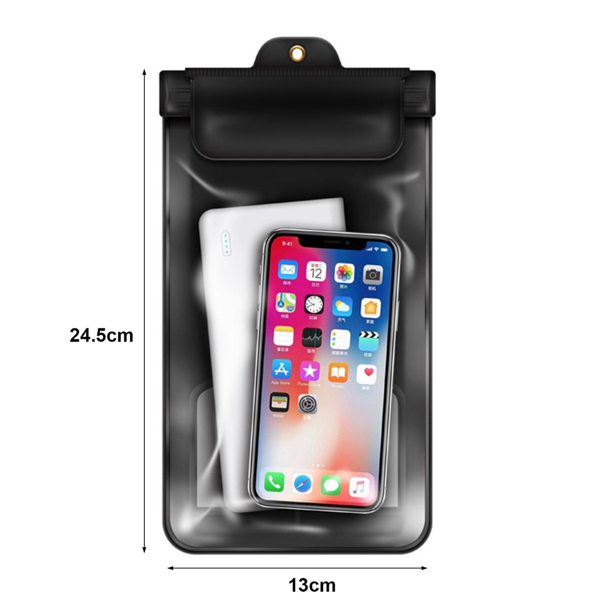 The length of this waterproof phone bag is 24.5cm and width is 13cm.