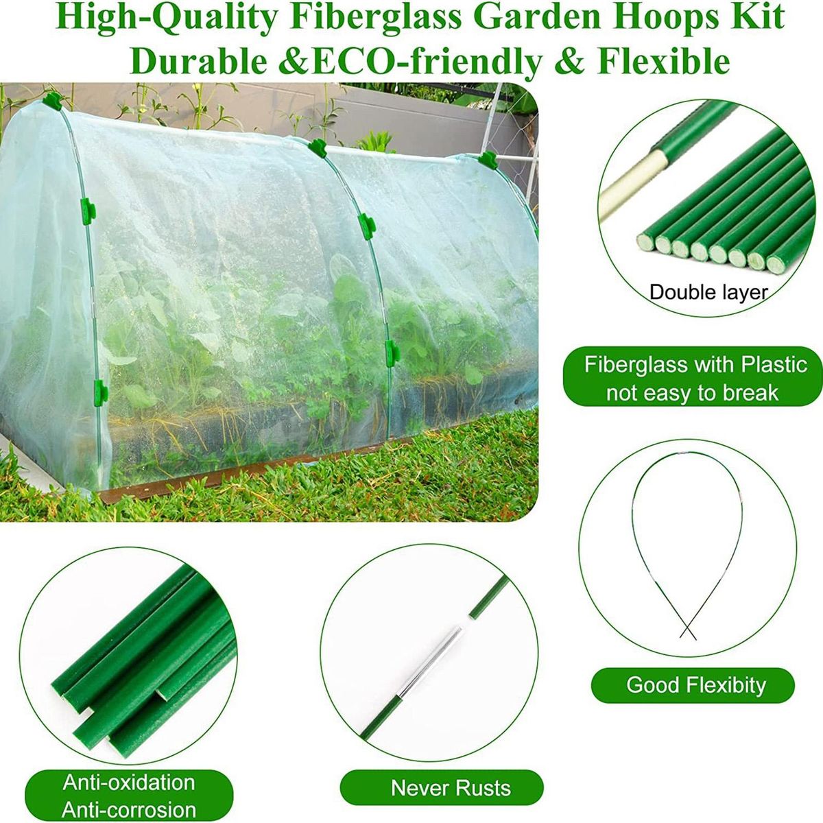 Such kit is strong, flexible and has more support space. Bend them into an arch and insert them into theto protect your plants stably in foggy and windy weather.