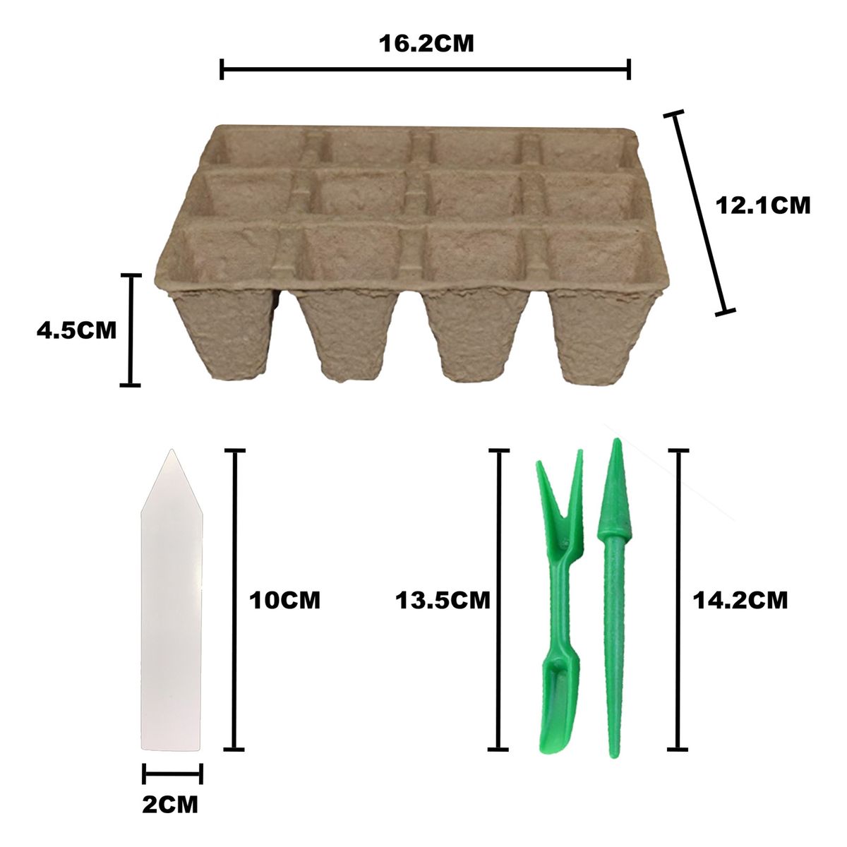 The length of the plant grow tray is 16.2cm, the width is 12.1cm and the height is 4.5cm.