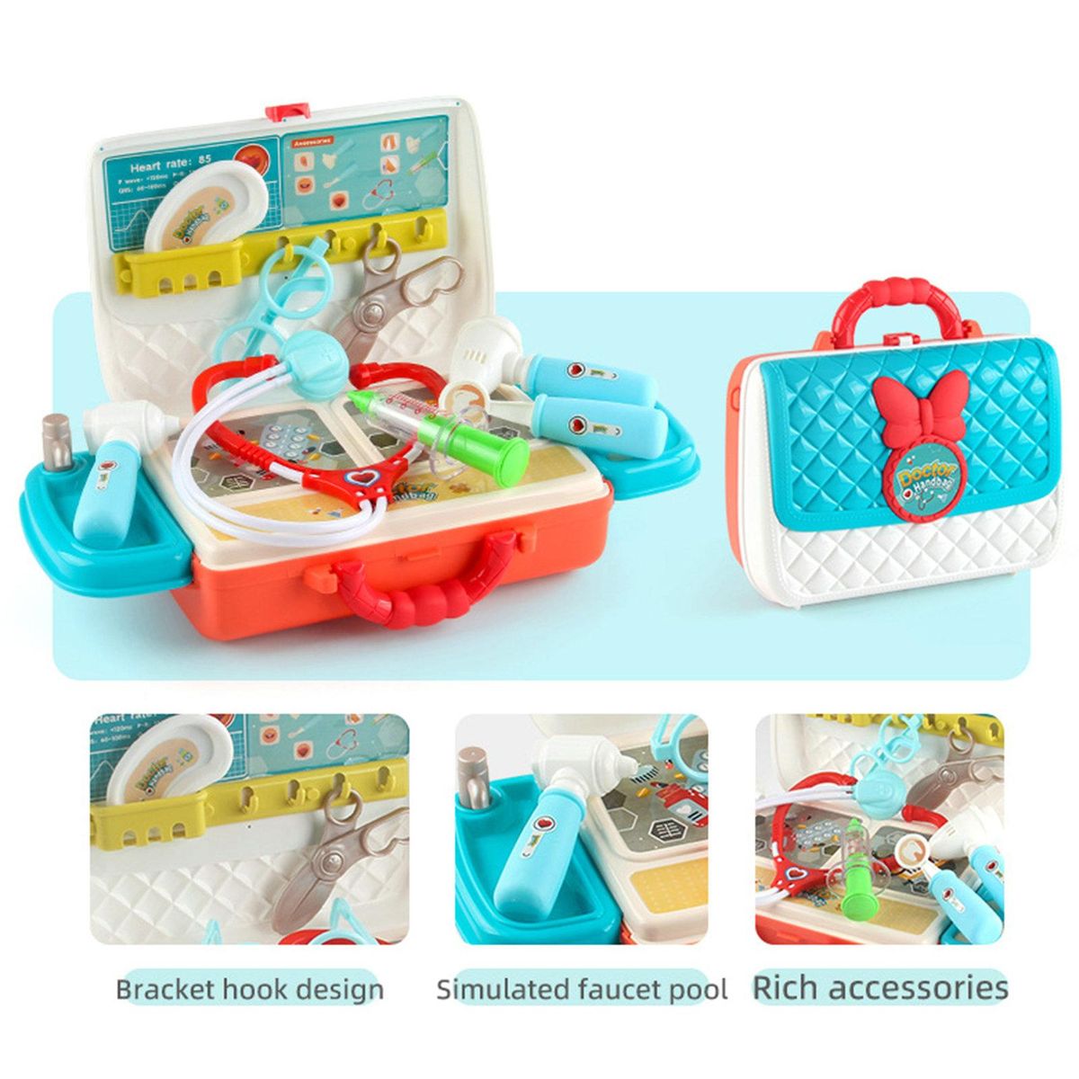 There are available in dressing table kit, a kitchenware set, mini doctor kit, pet cat toy set, which can help children simulate teaching makeup, cooking, medical-care, pet keeping, improving their hands-on ability and intelligence, which is a good pretend toy.