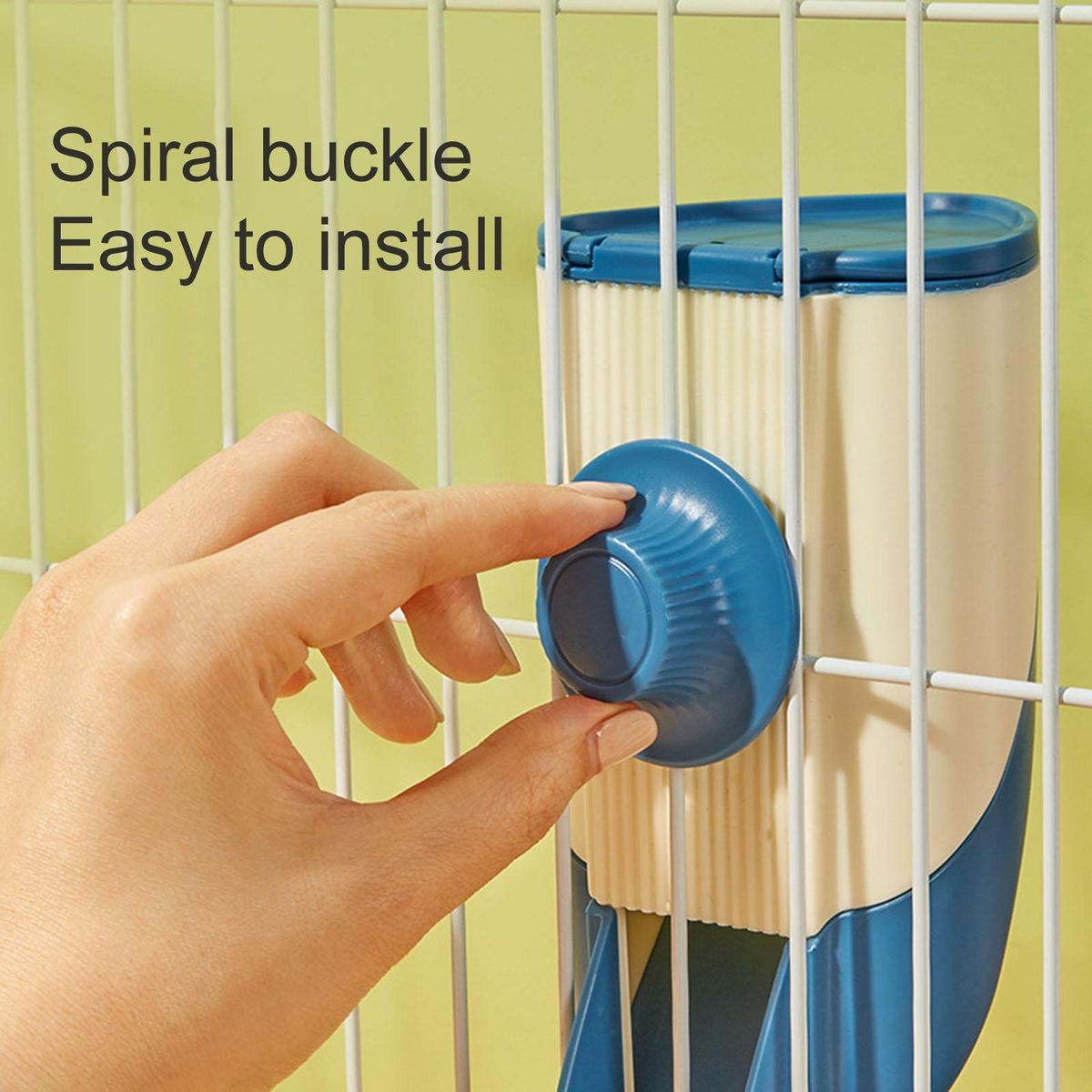 There is a spiral buckle in this pet feeder, which is stable and difficult to turn over, and it is easy to disassemble and install. It has a ramp to slide out the grain.