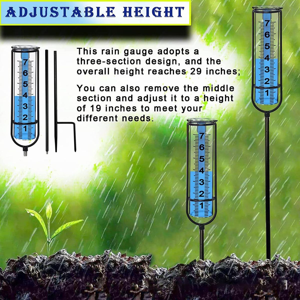 Such rainhas a clear scale, which is more accurate and readable. Metal piles are used, which are rust-proof, strong, easy to insert into the ground, simple to install and convenient to use.