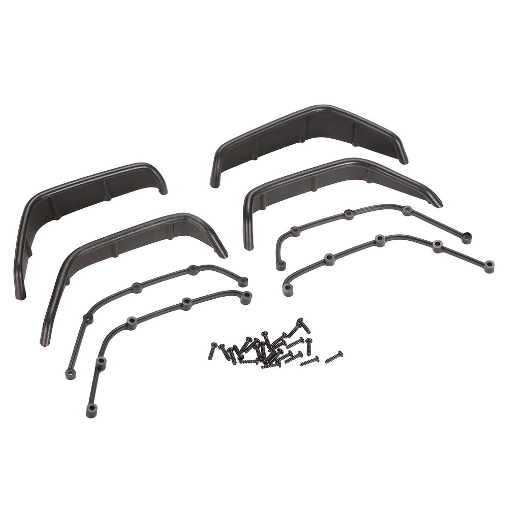 This product is made of high quality plastic material and durable in use. Strong construction let it look real, and it is also convenient to take. Super easy installation with no drilling required, which can protect the wheels. This is the good choice to decorate your crawler RC car. Just what you are looking for.