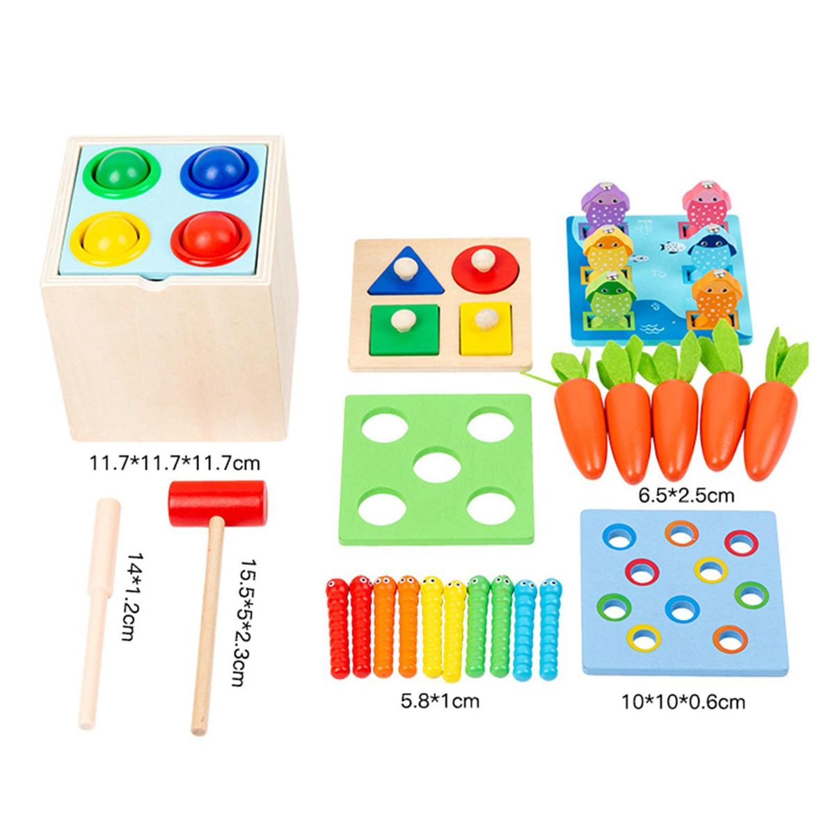 Each toy in this educational toy set has a designated slot for its respective color, which can help your baby identify and match colors and improve color recognition skills.