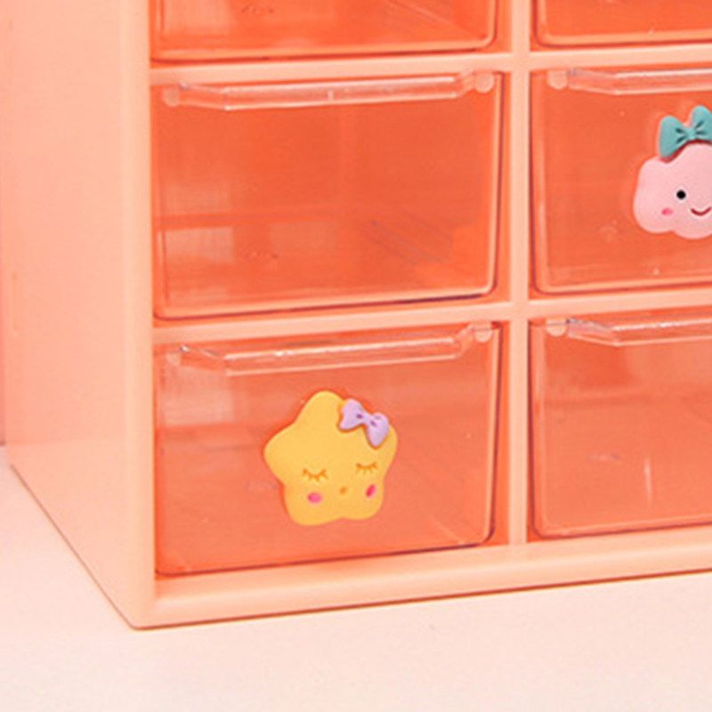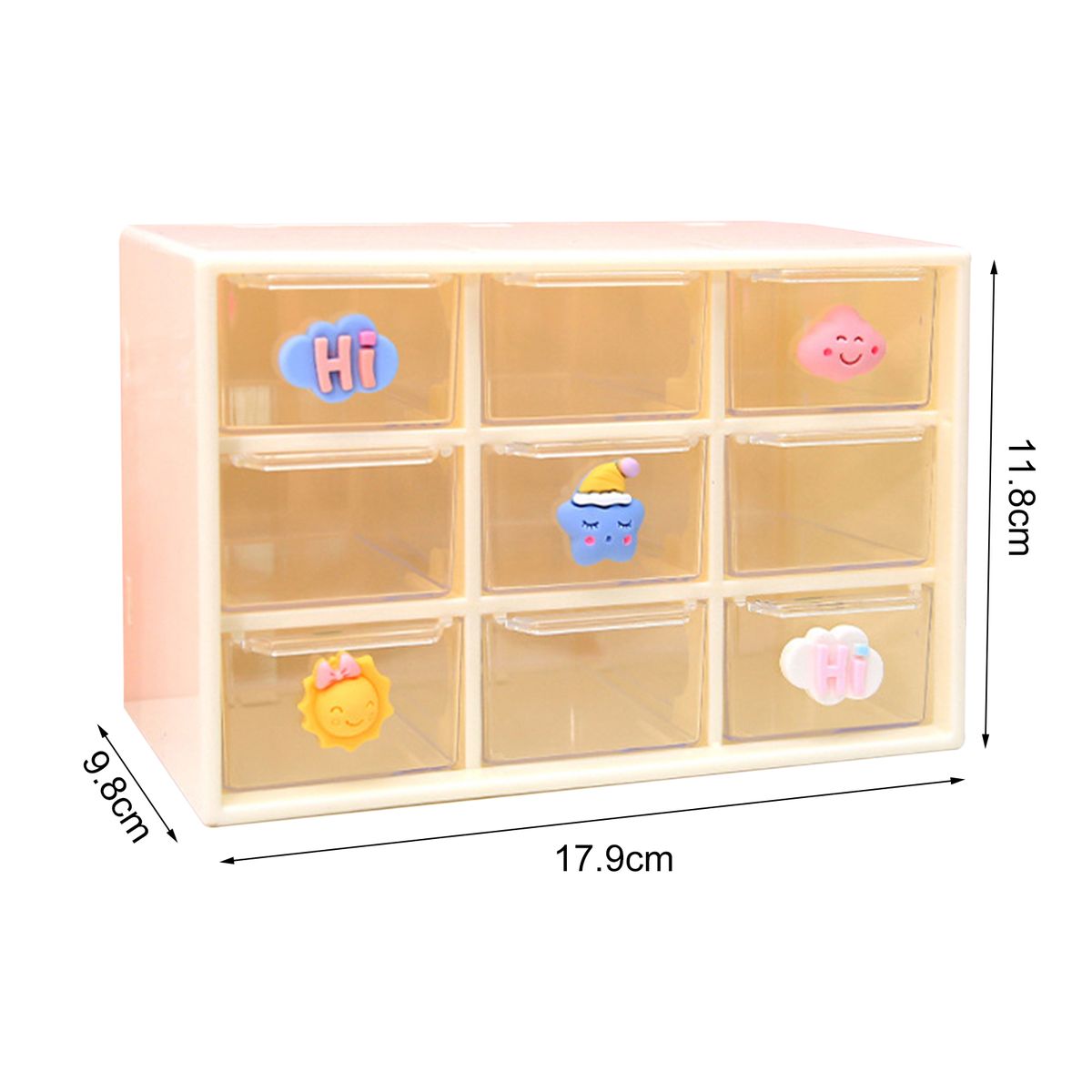 Storage box is designed with 9 grids, which provides you an ample space for storing stationery, necklace, hairpin, lipstick, makeup and other sundries.