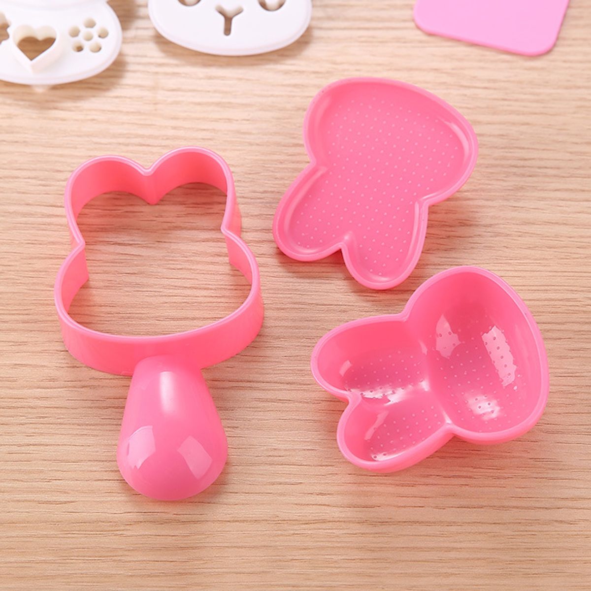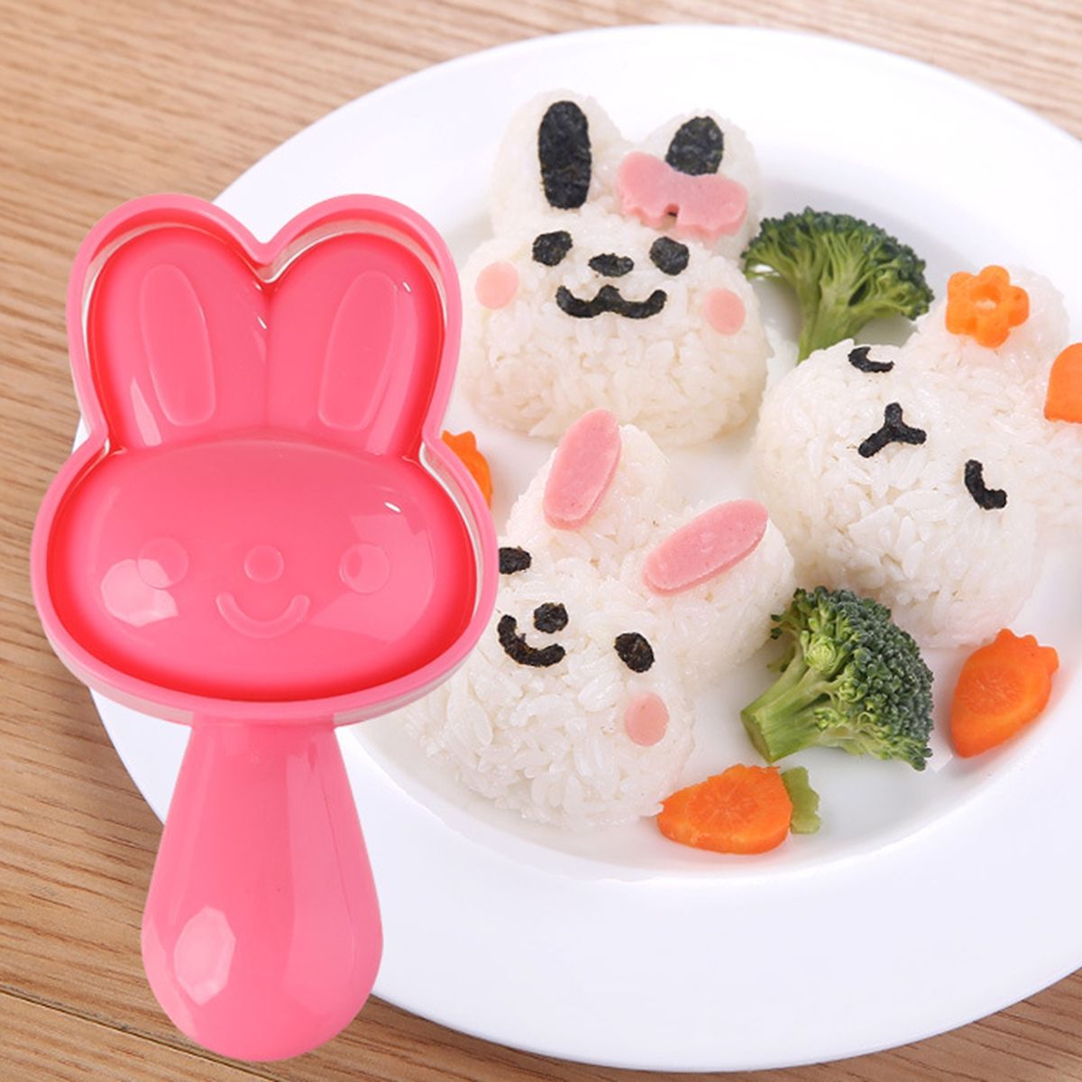 Very creative, this sushi mold makes rice balls in the shape of cartoon rabbits, and has a superb production process that is very safe in use and has very smooth edges.