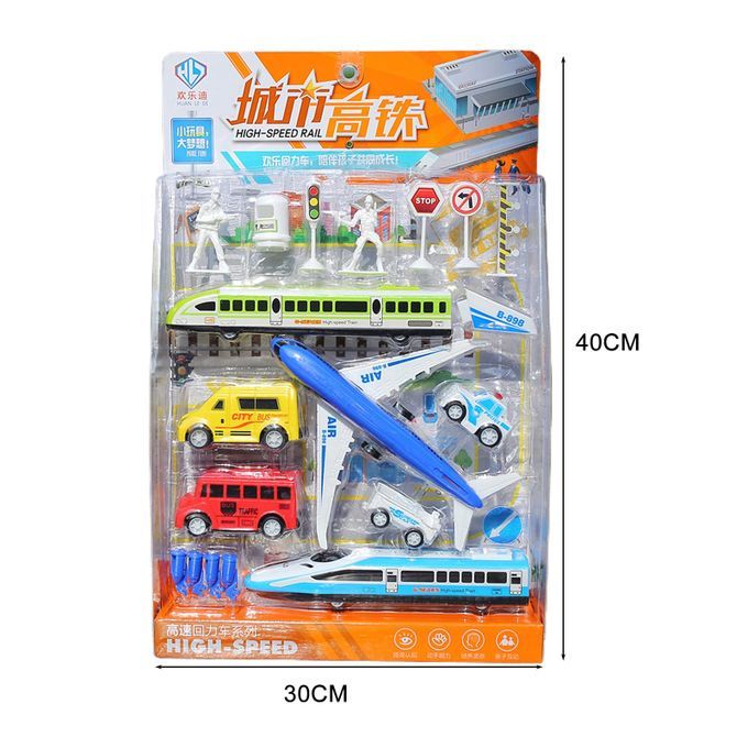 The length of the car toy packing is 40cm, the width is 30cm. There are three styles for you to choose from, namely, airplane set, fire brigade, and engineering vehicle toy.