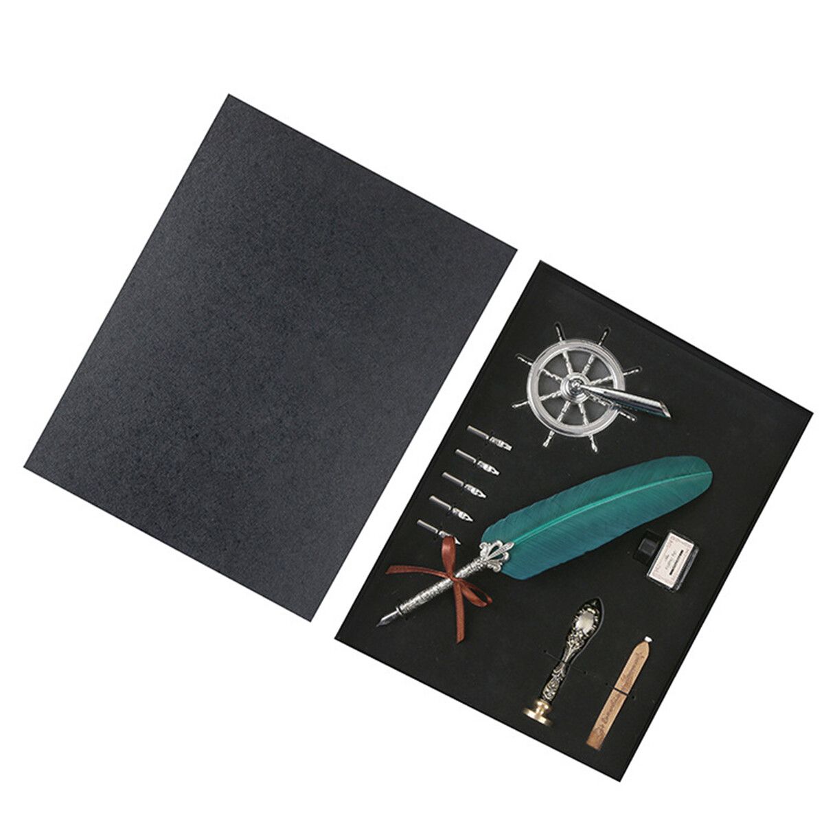 Package Included:1 x Gift Box,1 * Dip Pen with nib,5 * Nibs,1 * Ink Bottle (Empty Bottle),1 * Pen holder,1 * Stamp