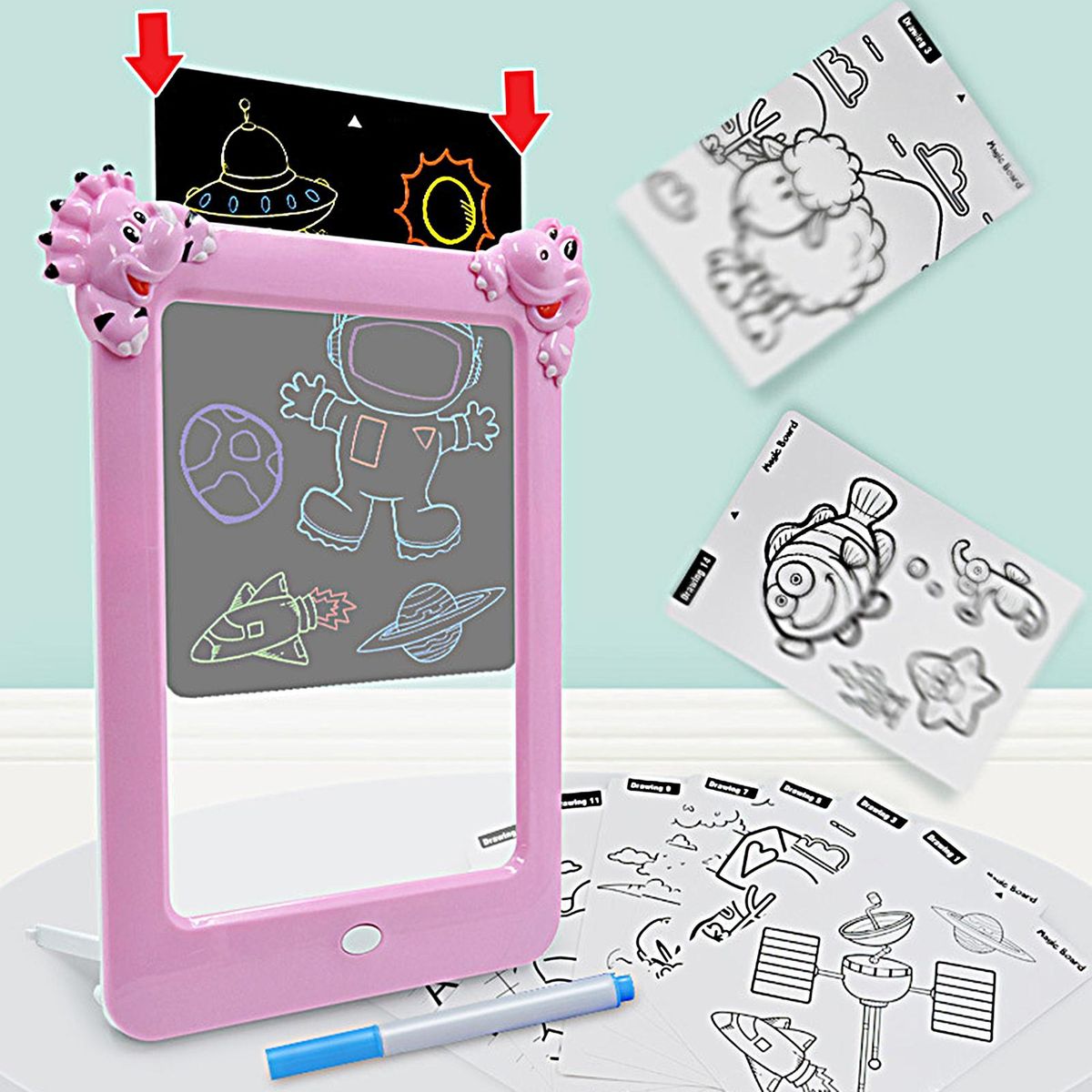 Designed with soft light, thisboard can protect your child's eyes and add luster to your paintings. Moreover, it has a suction cup design on the back, strong adsorption force, can be steadily sucked on smooth objects, not easy to fall, you can use with confidence.