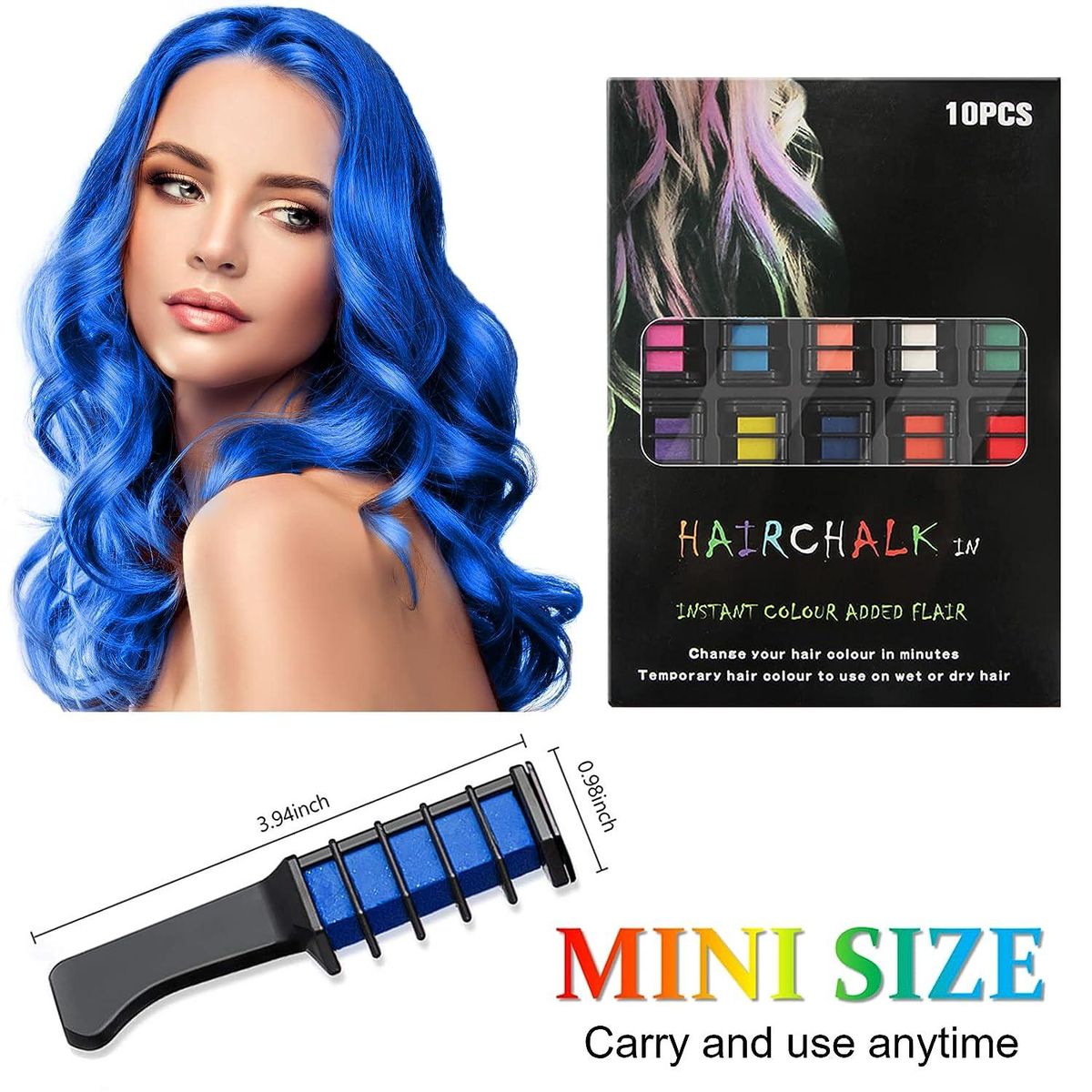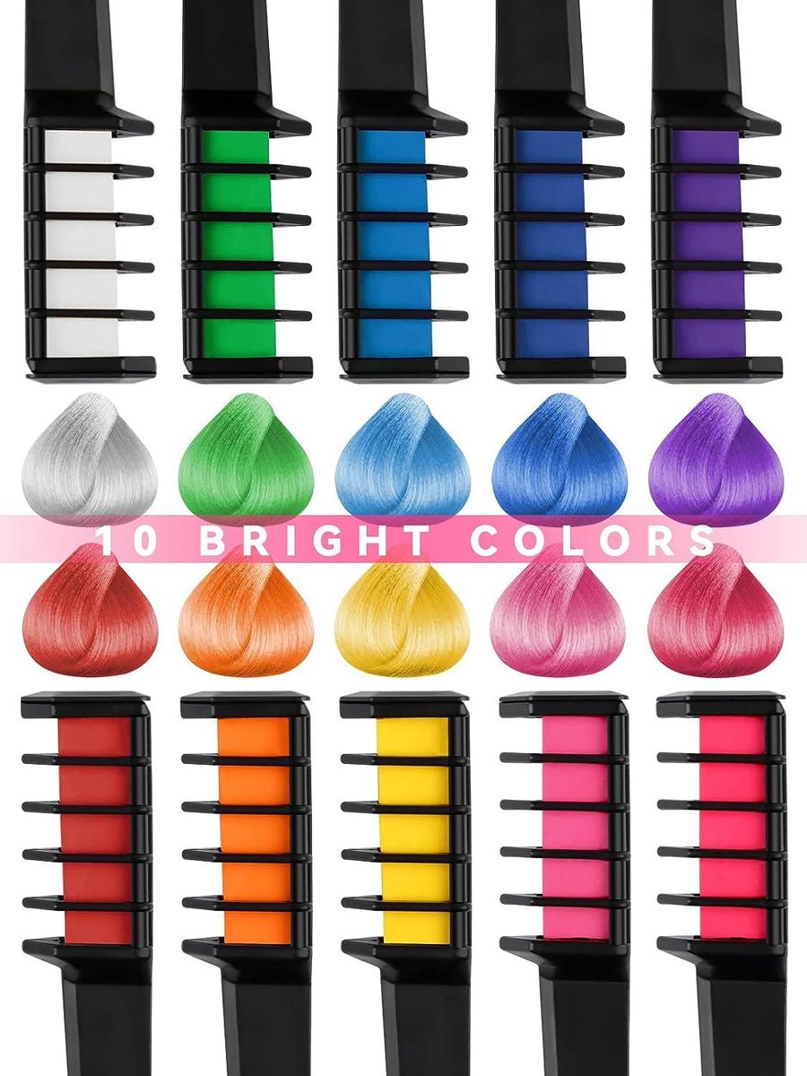 This super set of 10 hair chalks is the ideal birthday gift that will bring girls hours of fun and create the ultimate hair color you desire. And the temporary color is easy to wash off, material safety will not cause any harm to your body