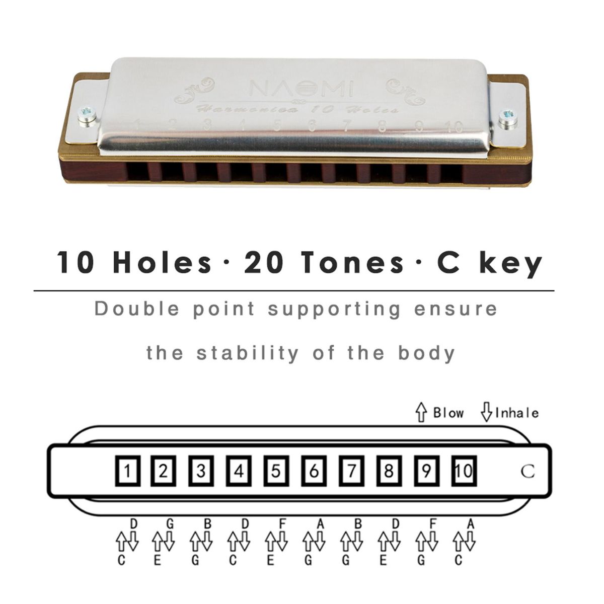 The 10-hole harmonica is small and exquisite, easy to carry; suitable for use on stage, classroom, travel, family day, party games.