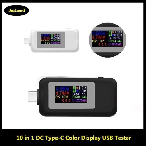 1X 10 in 1 DC Type-C USB Tester Current 4-30V Voltage Meter Timing Ammeter Digital Monitor Cut-off Power Indicator Bank Charger