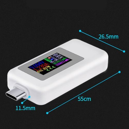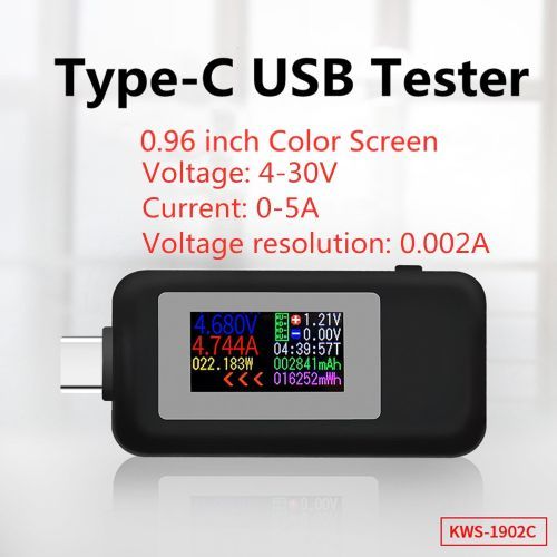 Product model: KWS-1902C Product size: 55x26.5x11.5mm Voltage: 4-30V Display: 0.96 inch color screen Current: 0-5A Voltage resolution: 0.002A Capacity: 0-999999mWh Current resolution: 0.002A Load resistance: 1-9999.9Ω Power: 0-150W Temperature: 0-80 ° C Energy: 0.999999mWh Timing: 0-99 hours Product interface: USB-C 24pin Product weight: 15 grams with packaging Test direction: two-way Package Include 1pcs USB Type-C Test Meter