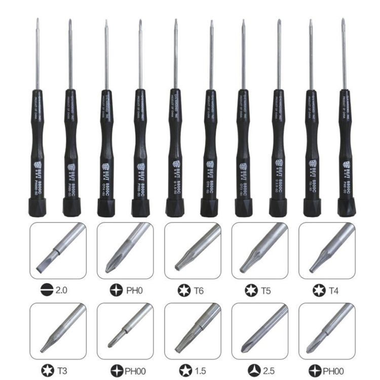 6. Screwdriver size: 2.0 / PH0 / T6 / T5 / T4 / T3 / PH00 / 1.5 / 2.5 / PH00