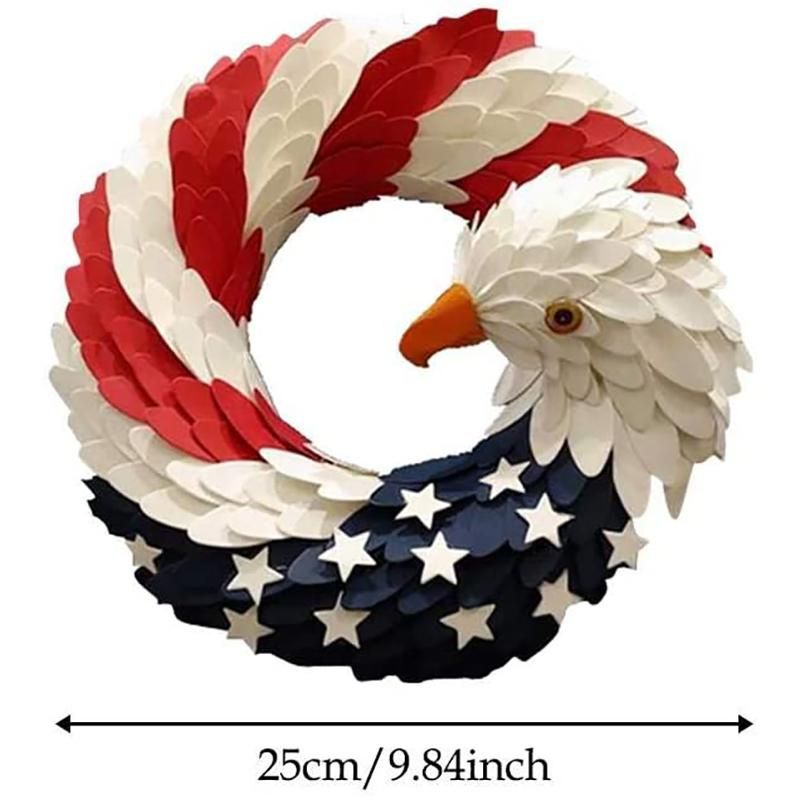 HIGH-QAULITY MATERIAL: Materia, poplar, polystyrene foam. Size: diameter 10in, height 1.96in. LOOK: Features red, white and blue ribbons, can be hung. PROCESS: , carved poplar shavings + foam, the glory in a new way.