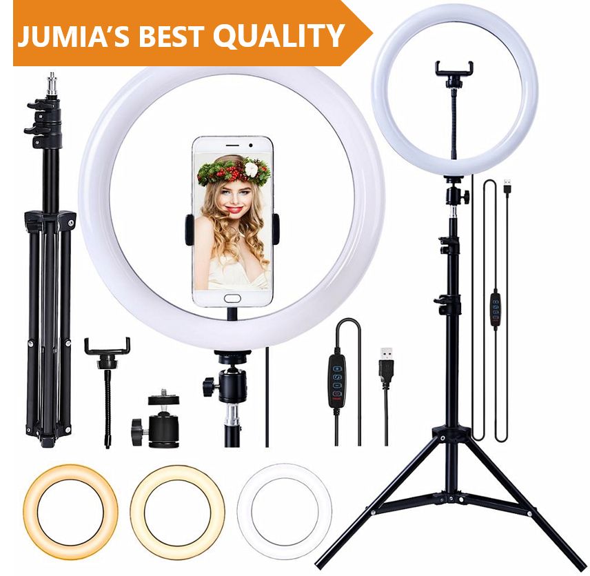 Well here it is, your solution a stylish LED ring light equipped with a phone holder, 210 cm tall, Bluetooth remote, USB cable. This dimmable led ring light has 3 color mode (white, cool white, warm white) from 1% - 100% Perfectly dimmable brightness and colors meet all your needs. Easily switch color temp to observe all kinds of makeups, avoiding awkward makeup disasters. This colorful LED ring lighting specializes in giving your face a professional look, getting a dramatic improvement, and more confidence in Selfies, Make-up, Live streaming, Beauty bloggers, Video calls, Interviews, and online meetings.