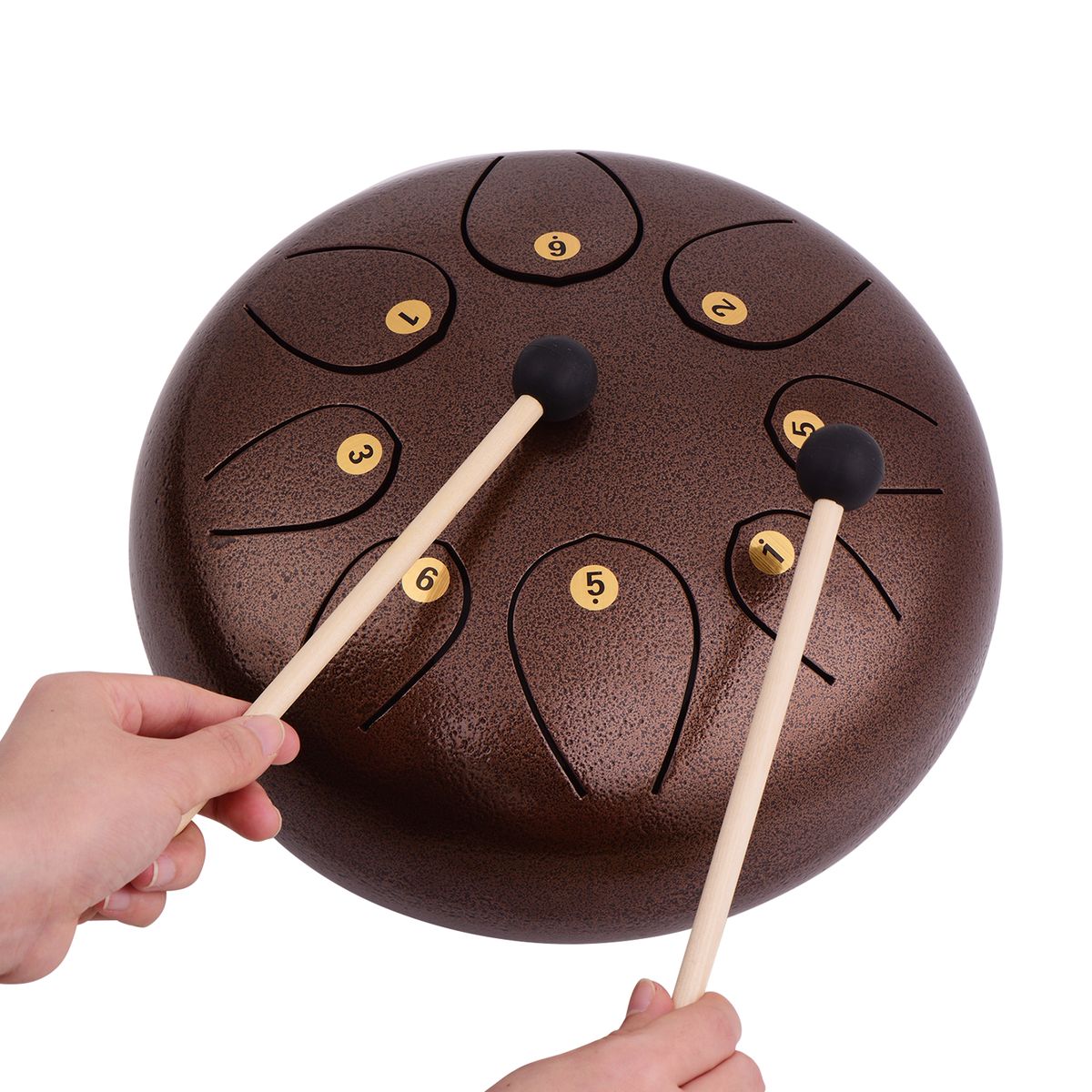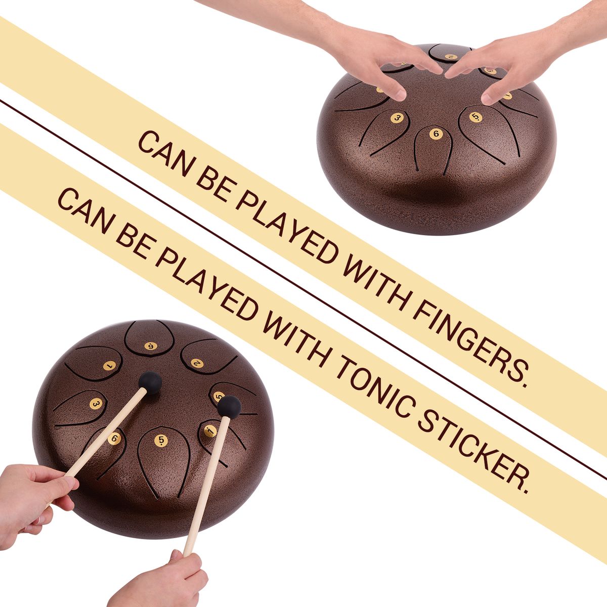 Tongue drum, with abundant and highly contrasting texture, combines the timbre of chime, Qing, Songbo (Traditional Chinese musical instruments), Guqin(A seven-stringed plucked instrument in some ways similar to the zither) and zither. Learning to play tongue drum enhances musicians\' imagination, concentration and memory, improves physical and mental health and makes you calm, optimistic and transparent.