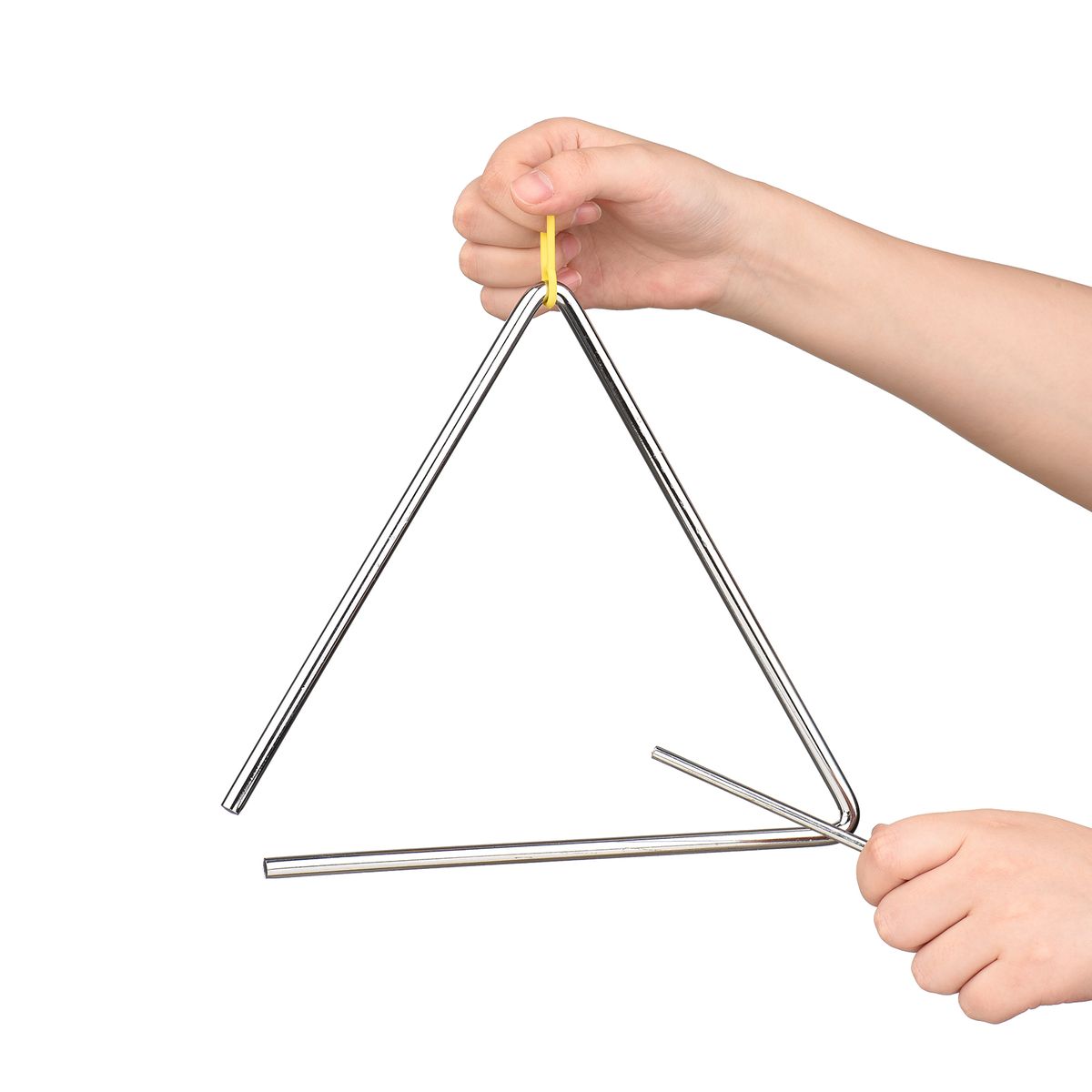 Equipped with a little metal mallet, strike it to the triangle and a melodious sound comes out.